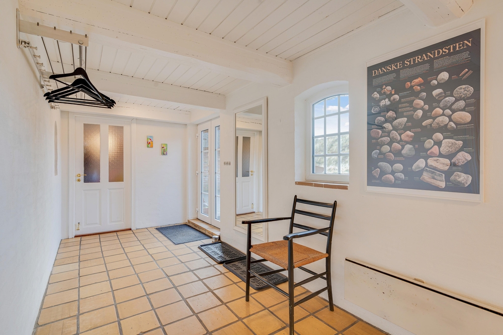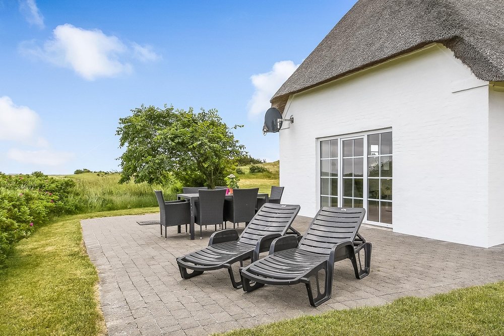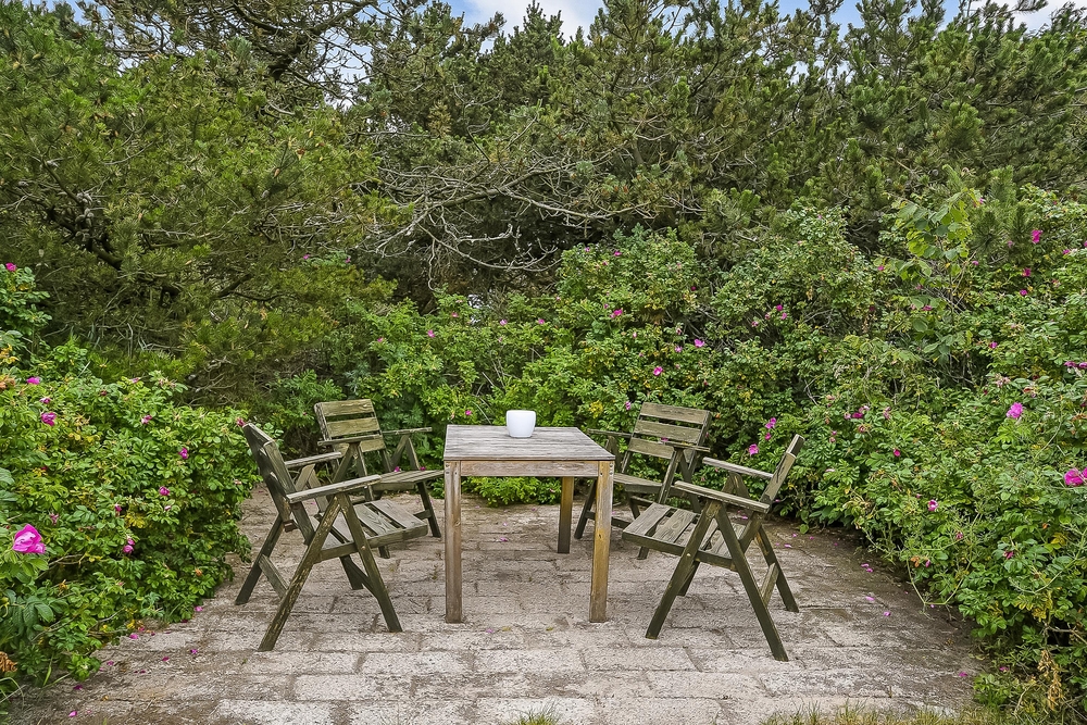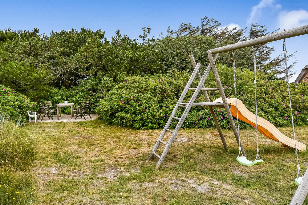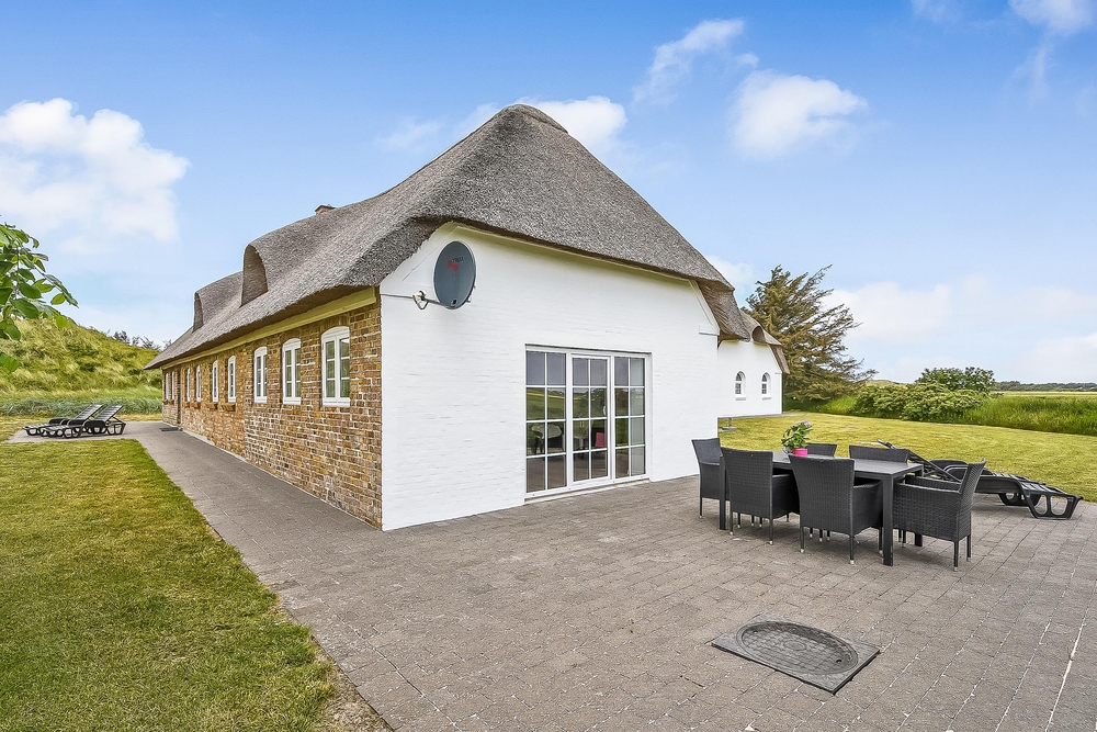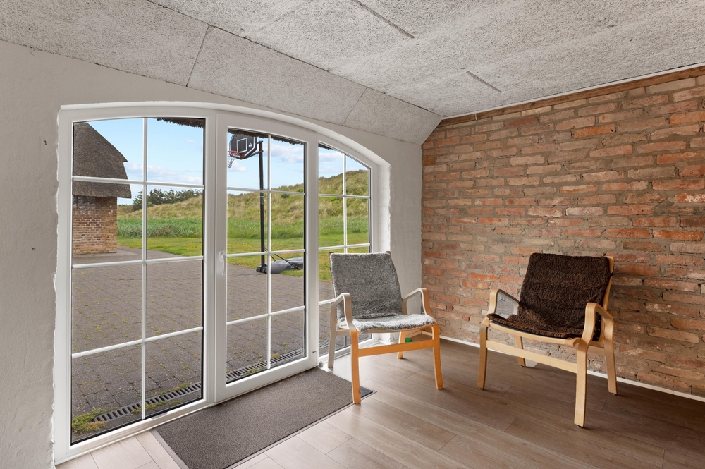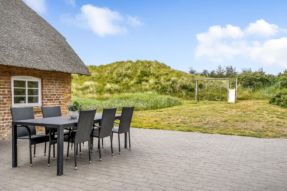 Vågn op med solen og indtag morgenmaden på terrasserne mod øst. Med hyggelige terrasser hele vejen rundt om klitgården har I rig mulighed for at nyde solens stråler og den betagende udsigt til naturen på den mere end 8.000 kvadratmeter store grund. De afskærmede terrasser er med til at forlænge ?ude-tiden?, og der er masser af gode lækroge omkring sommerhuset. Der er også en basketballkurv udenfor, så børnene er godt underholdt, mens I slapper af i solen med en god bog.