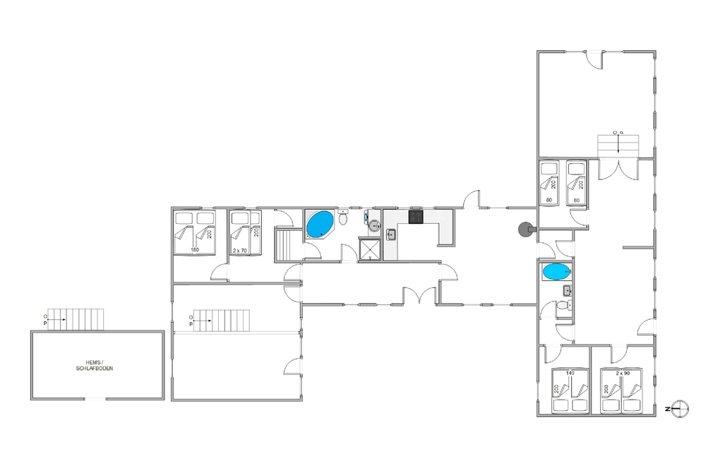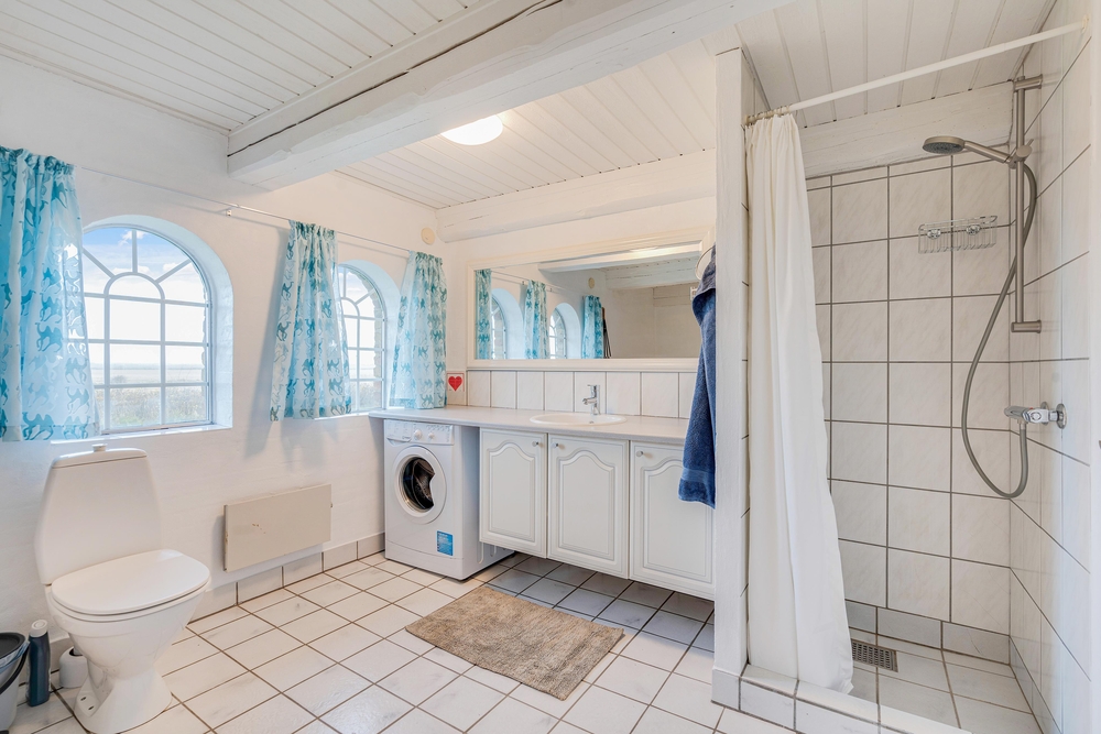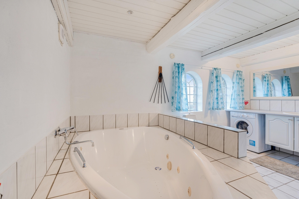 Sommerhuset er indrettet med 5 soverum og en ekstra hems med dobbeltseng. Der er 2 badeværelser; det ene er med et ?rigtigt? badekar, og det andet er et større badeværelse, med spa og sauna som indbyder til afslappende wellness efter en lang dag i den vestjyske natur.