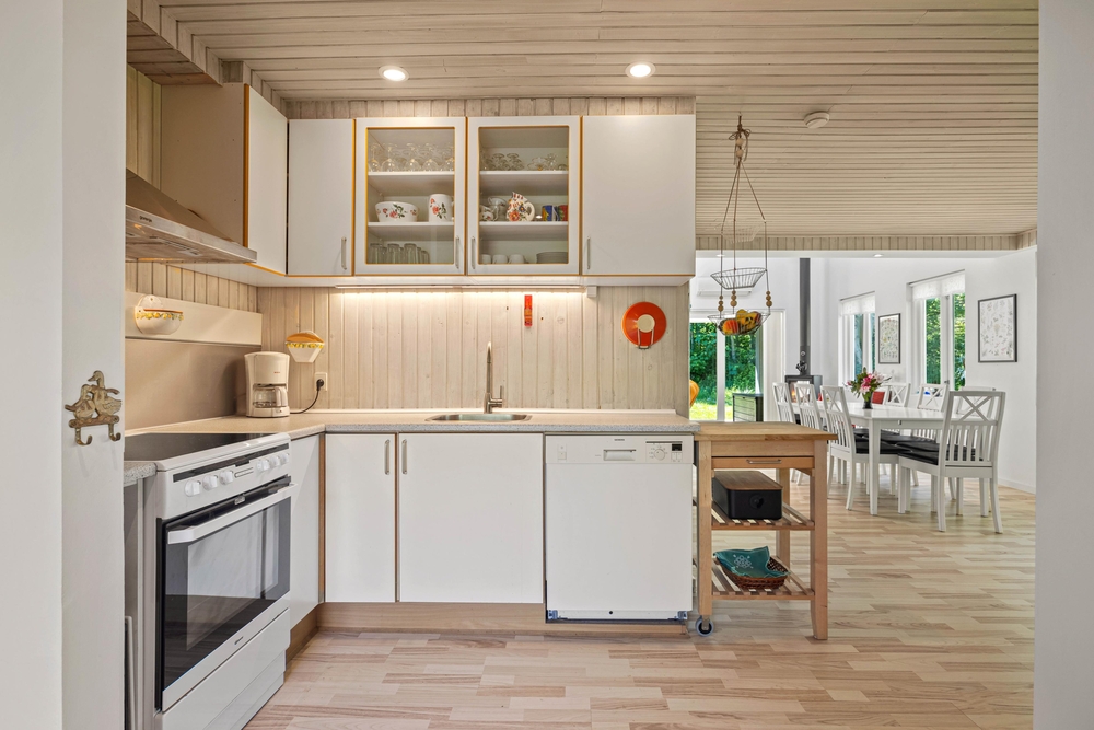 Fra sommerhuset er der også blot 370 meter til en børnevenlig strand, perfekt til afslappende dage ved vandet. Og for dem, der søger mere action, er der også mulighed for kitesurfing.