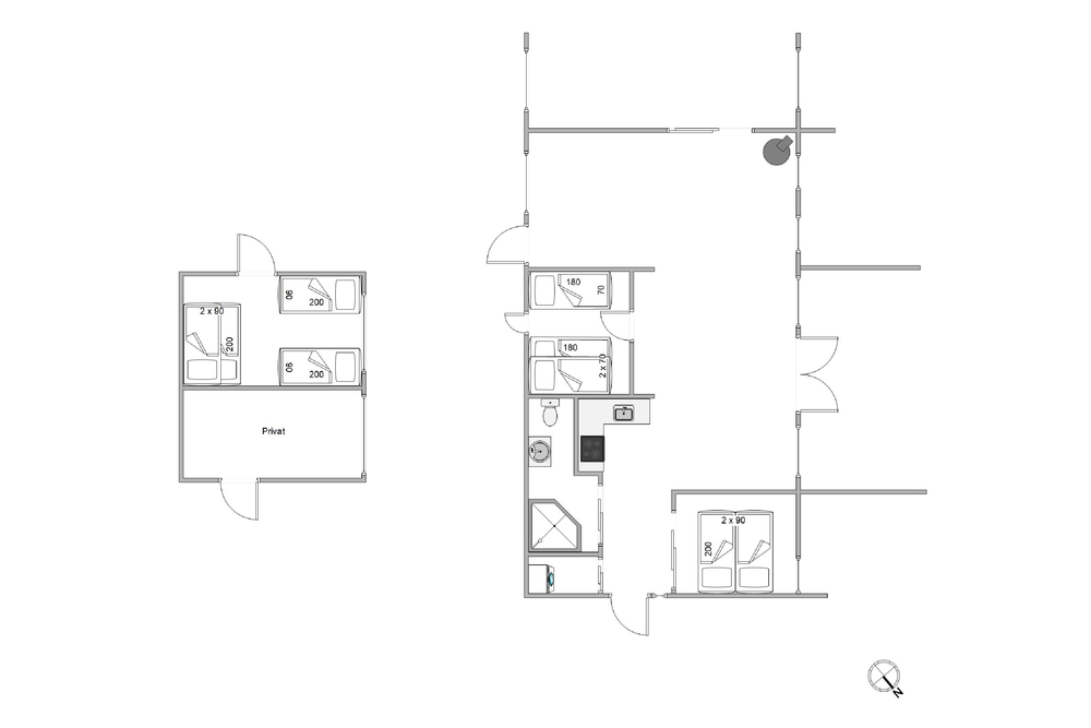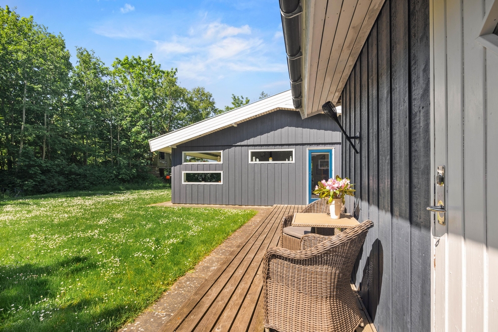 Med 3 soveværelser er dette sommerhus perfekt til familier. Et af værelserne er udstyret med en dobbeltseng, mens det næste er indrettet med en enkeltseng samt en køjeseng. Dertil har sommerhuset også et dejligt anneks med 4 sovepladser fordelt på en køjeseng og 2 enkeltsenge.