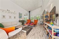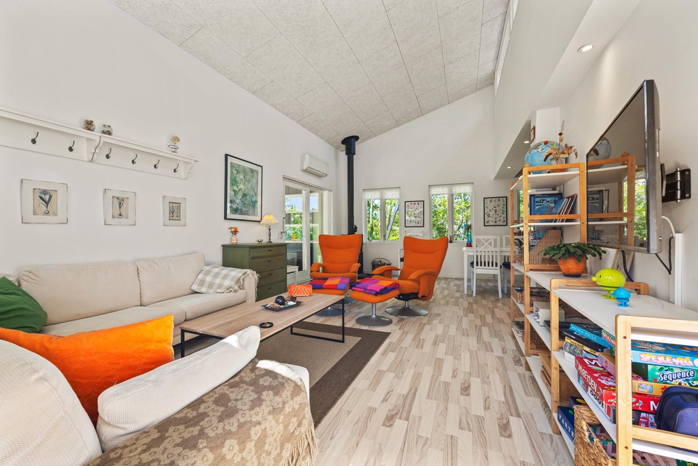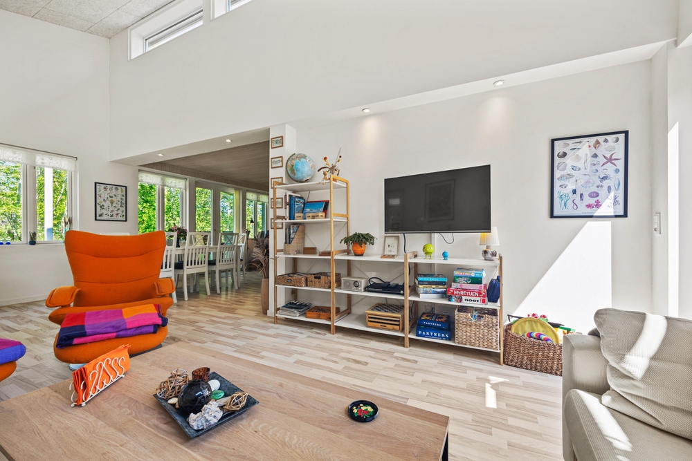 Stuen er det ideelle samlingspunkt for hele familien, med tilstrækkelige siddepladser til alle. Her kan I nyde varmen fra brændeovnen, der tilføjer et ekstra strejf af hygge ? måske vil selv jeres hunde finde det ekstra dejligt at slappe af foran brændeovnen efter en dag fuld af eventyr i Bork Havn.