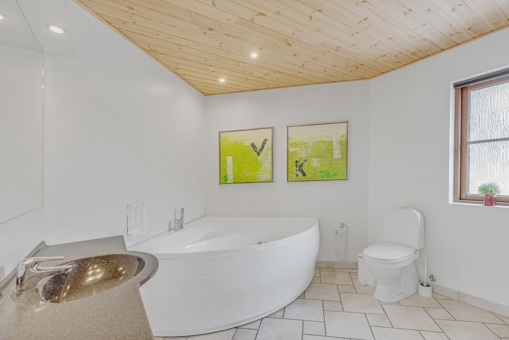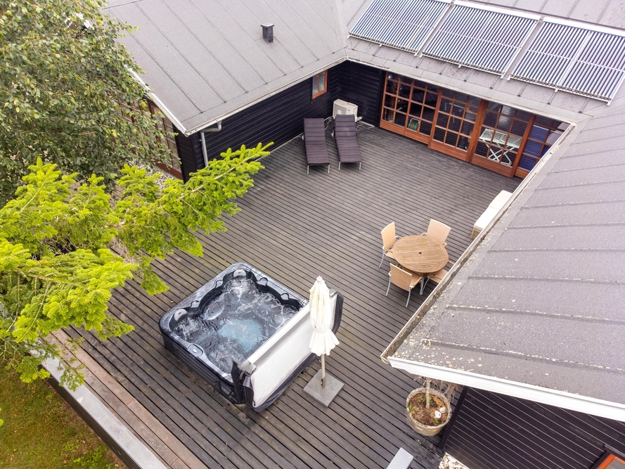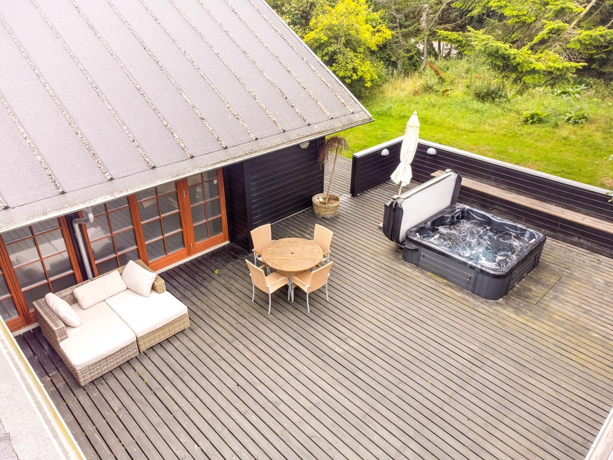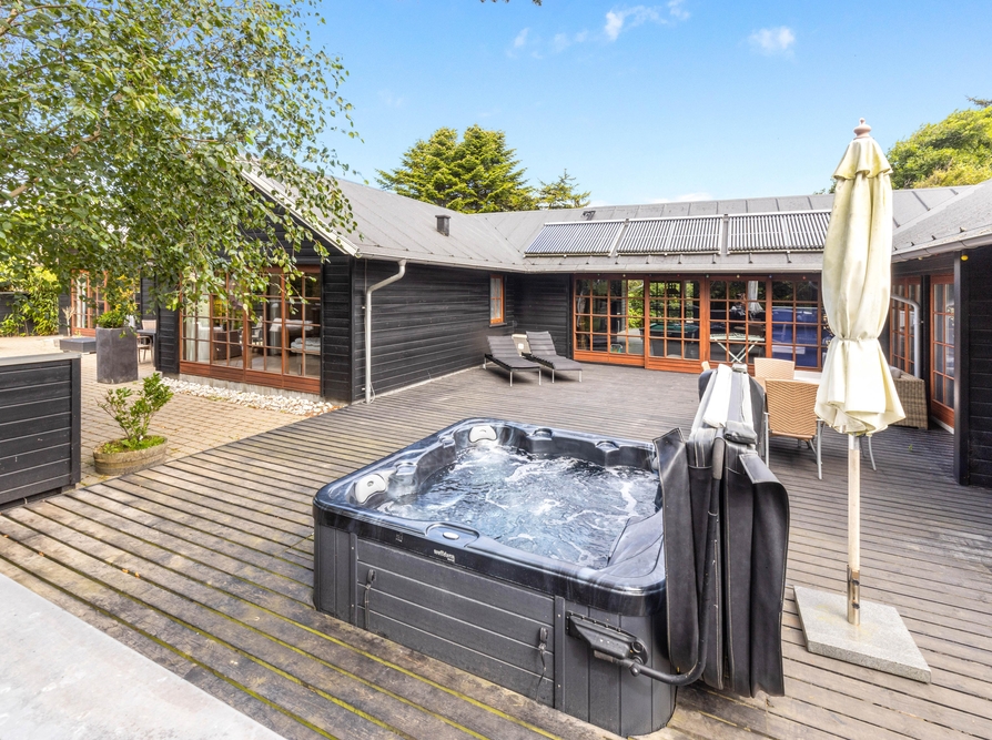 På det ene af de 3 badeværelser i sommerhuset står spaen klar til jer. Sæt jer godt til rette i det varme, boblende vand, mens I lader kroppen slappe fuldstændig af. I kan også gå ud på terrassen, hvor udespaen står klar til at forkæle jer med ekstra afslapning under åben himmel.