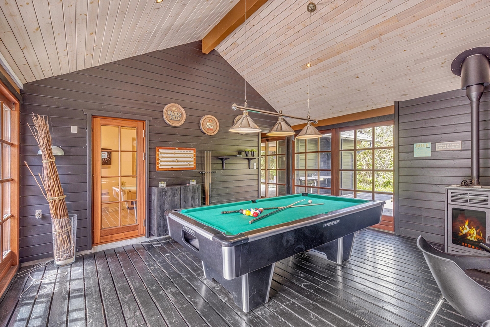 Der er også underholdning på programmet i aktivitetsrummet, hvor et billardbord står klar til jer. Måske I skal have gang i en turnering for at finde ud af, hvem der er den bedste til billard? I aktivitetsrummet kan I åbne skydedørene på begge sider.