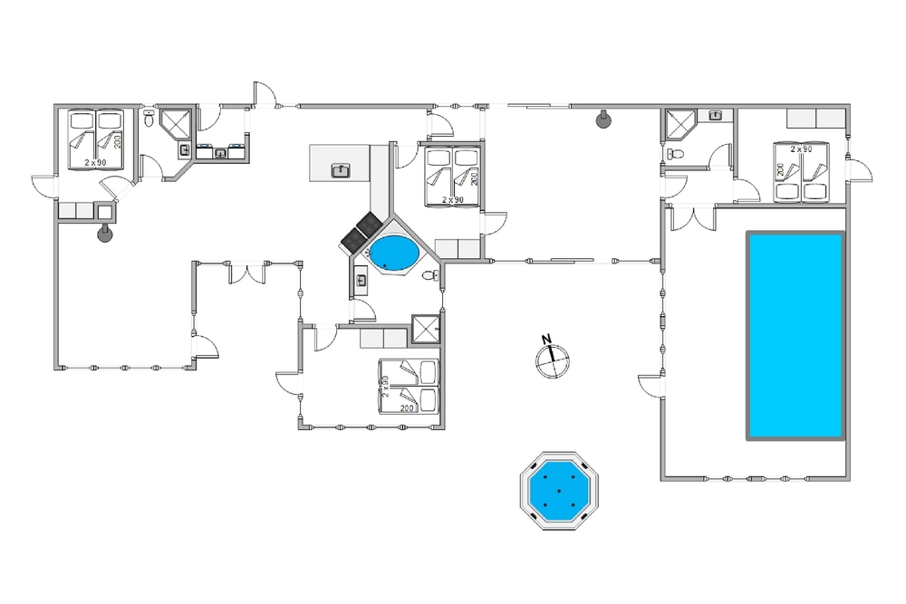 Skal der hellere være gang i den, kan I rykke ind i sommerhusets poolrum, hvor der venter jer en 32 kvadratmeter stor pool. For familiens vandhunde vil poolen helt sikkert blive et stort hit på ferien, og I vil uden tvivl tilbringe mange underholdende timer her!