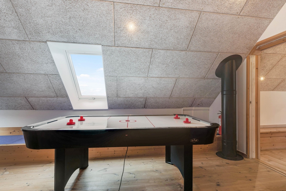 Den ene ferielejlighed danner ramme om et af ferieboligens højdepunkter: Det er nemlig indrettet med et aktivitetsrum med airhockey. Her kan I udfordre hele flokken på kryds og tværs, og måske skal der lægges an til en spændende turnering i løbet af ferien?