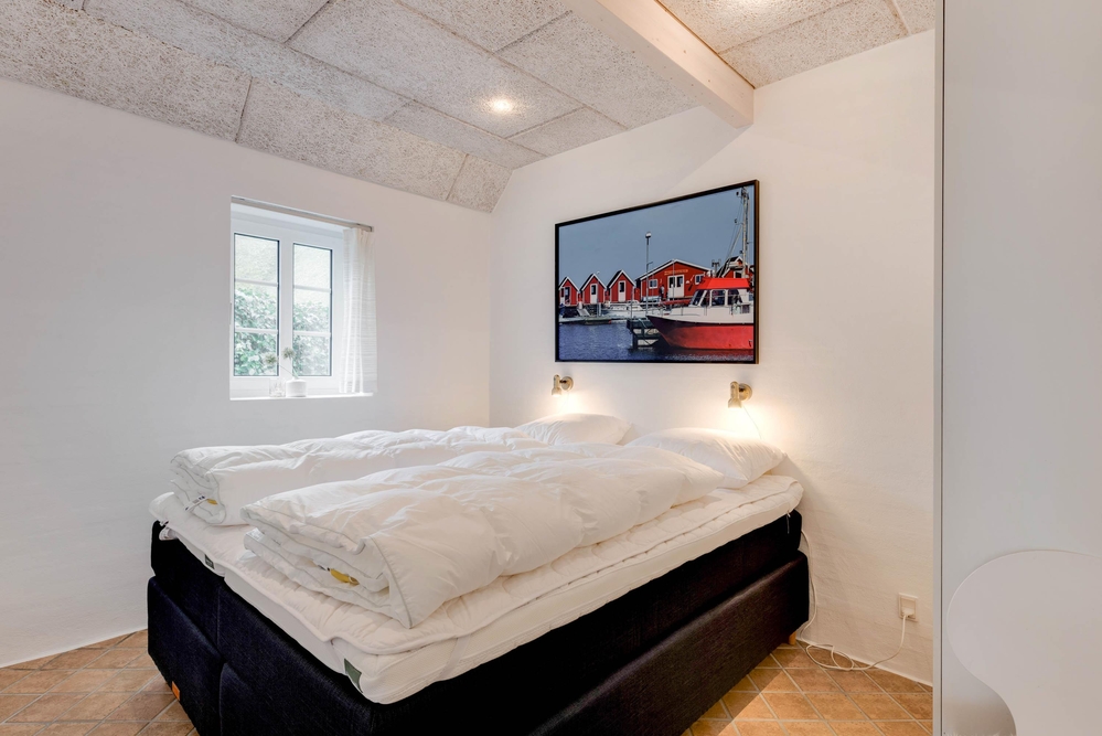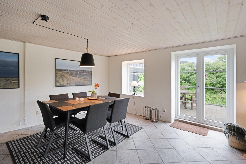 Det store feriehus på Hvidbjergvej 2 har en god beliggenhed omtrent et kvarters gang væk fra Søndervigs centrum. Der er altså ikke langt til de små caféer og restauranter, ligesom I hurtigt kan klare dagens indkøb hos den lokale købmand. Søndervigs populære strand ligger desuden kun ti minutters gang fra feriehuset, og en gåtur langs vandet er forfriskende hele året rundt.