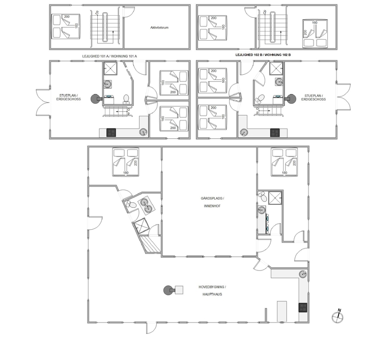 I hovedhuset finder I masser af plads til at samles om madlavningen, arrangere en hyggelig spilaften eller planlægge morgendagens udflugter rundt om spisebordet. Er I flere familier af sted, og har I forskellige planer med ferien, er det også muligt at trække sig tilbage i en af de separate ferielejligheder, der begge er fuldt udstyret med køkken og stue.