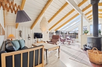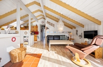 Det charmerede sommerhus i Lodbjerg Hede vinder ved første bekendtskab. Det er hyggeligt og lyst indrettet og tager virkelig imod sine gæster på bedste vis. Sommerhuset har et stort køkkenalrum med spiseplads i forlængelse af dagligstuen. Faktisk er der 2 dejlige sofaområder, hvor I kan slå jer ned foran fladskærmen eller med en tyk bog i hånden. Og med den knitrende brændeovn i baggrunden vil I hurtigt give jer hen til den afslappende sommerhusstemning.
