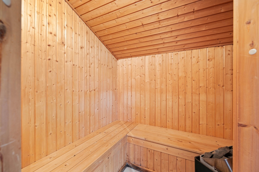 Der er gulvvarme på begge badeværelser og et af feriens absolutte højdepunkter finder I på det store badeværelse. Der er nemlig både spabad og sauna i sommerhuset, så I rigtig kan slappe af og nyde feriens ro. Som et ekstra plus er der vaskemaskine og tørretumbler til jeres rådighed.