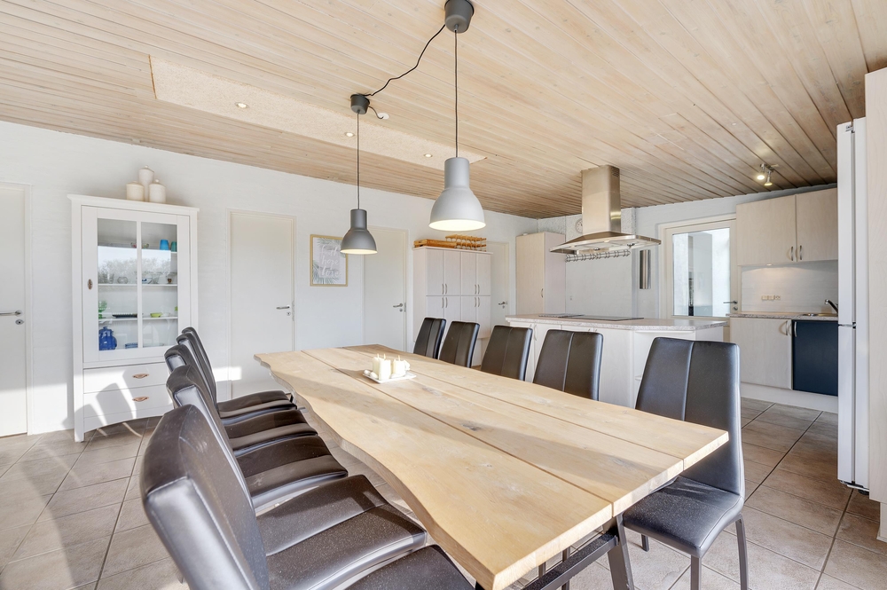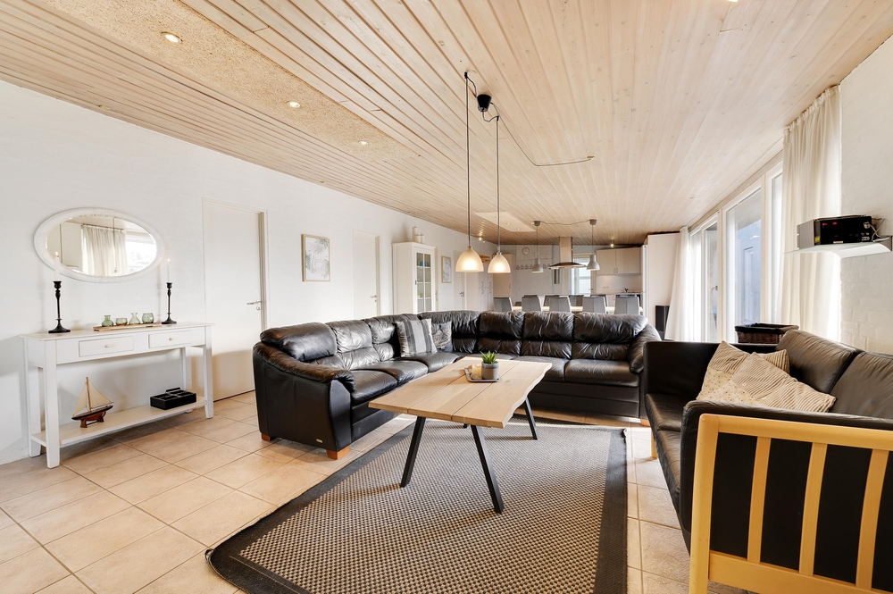 Et utroligt dejligt og velholdt sommerhus med en lys og hyggelig indretning. Her er plads til ti personer i de i alt fem soveværelser. Alle med trævgulve og dobbeltsenge. Der er tre badeværelser, alle med bruseniche, hvilket især er praktisk hvis I er mange afsted på ferie. Noget andet der også er yderts praktisk ved dette hus, er alle de dejlige faciliteter. For at gøre pakningen nemmere og fri jeres bekymringer, for at spilde på jeres yndlingstøj, er sommerhuset også udstyret med både vaskemaskine og tørretumbler.