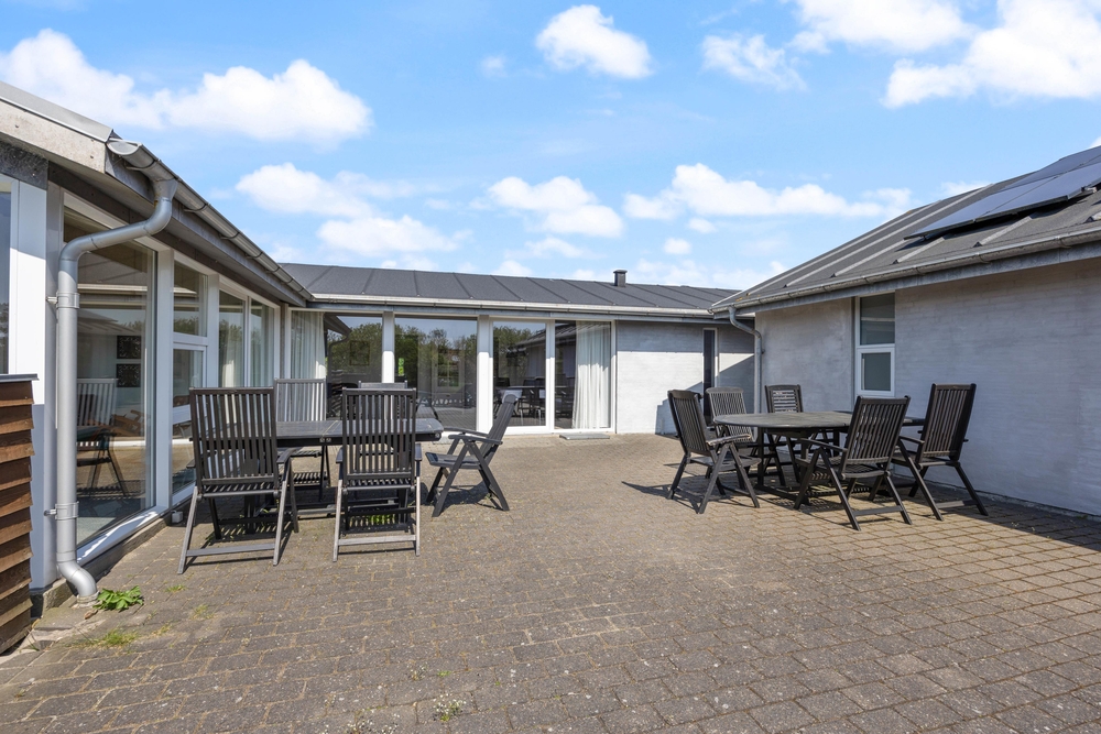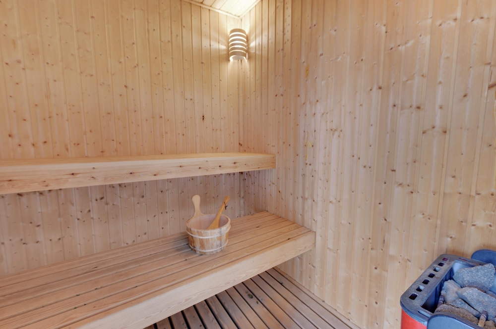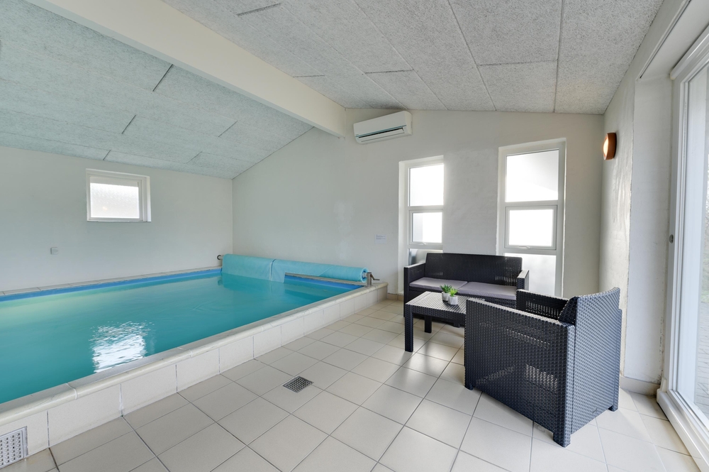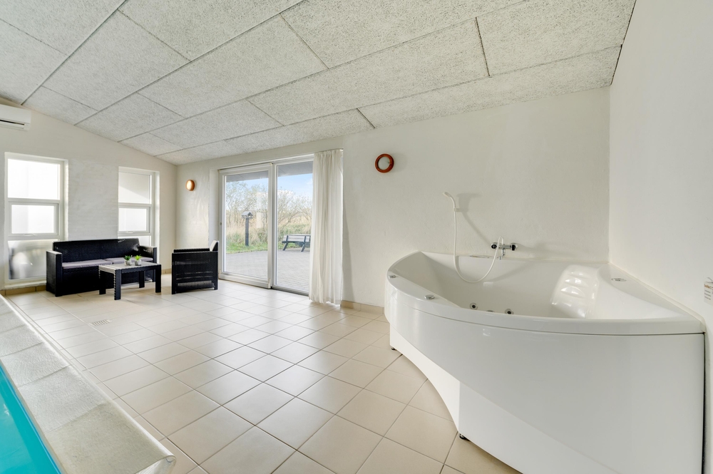 Dette dejlige sommerhus har en skøn separat tilbygning med en 24 m² stor pool og et skønt wellnesshjørne med både spabad og sauna. Her kan børn og voksne boltre sig fra morgen til aften uden at det forstyrrer hele huset. Der er tilmed også et lille møblement i hjørnet, der tillader at voksne kan sidde her og holde øje med de mindste, mens de nyder den dejlige pool og alt det sjov som den med giver.