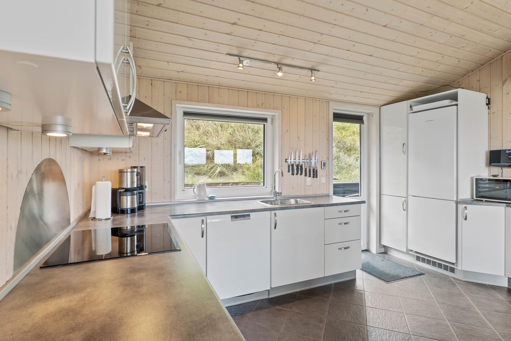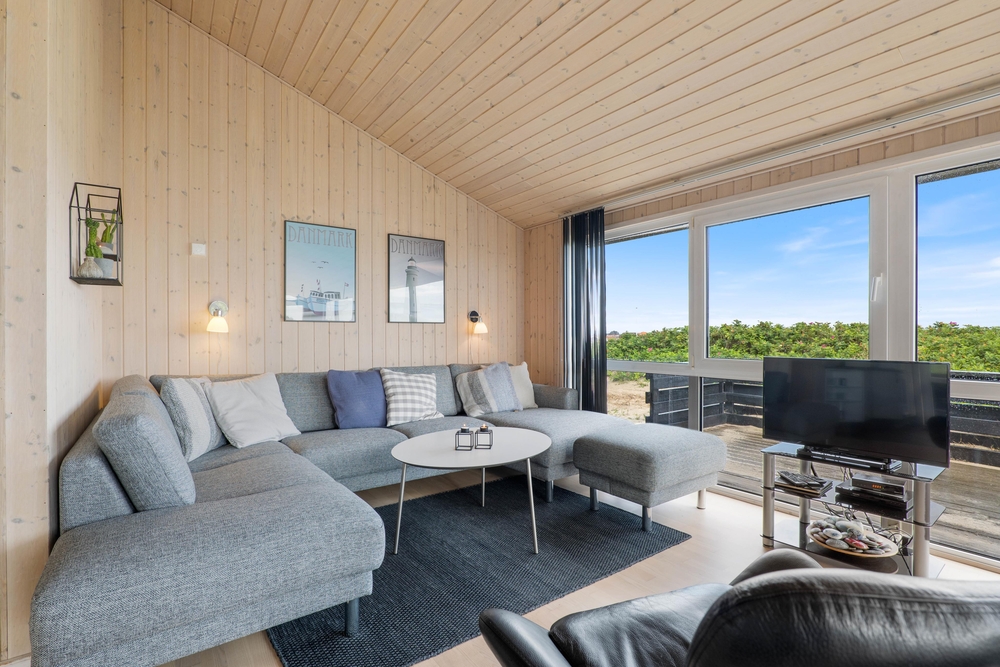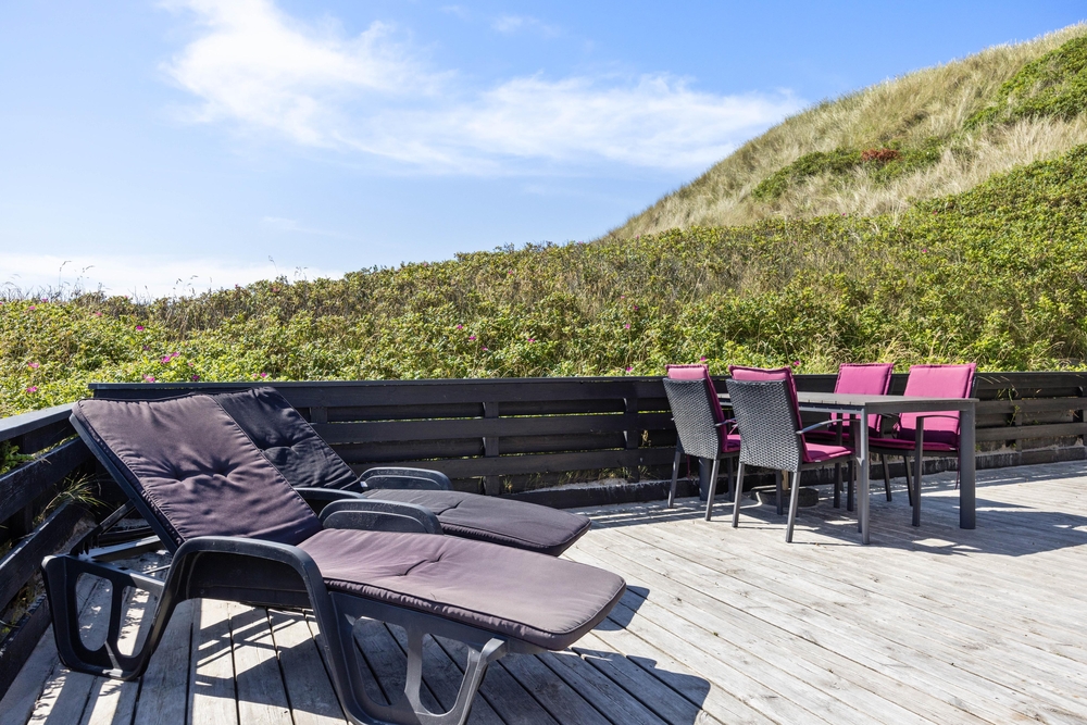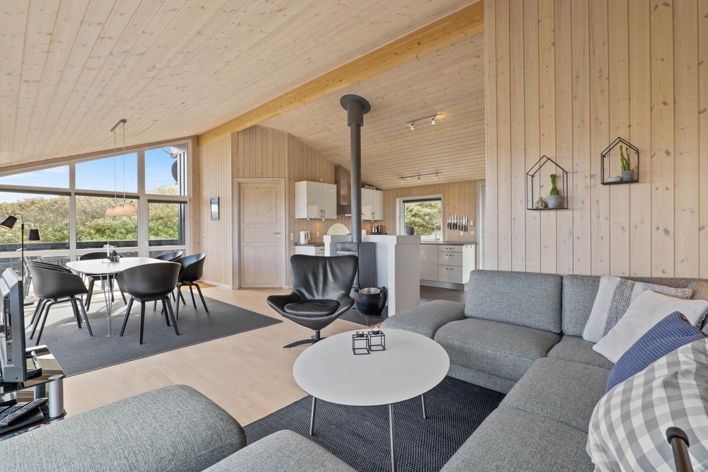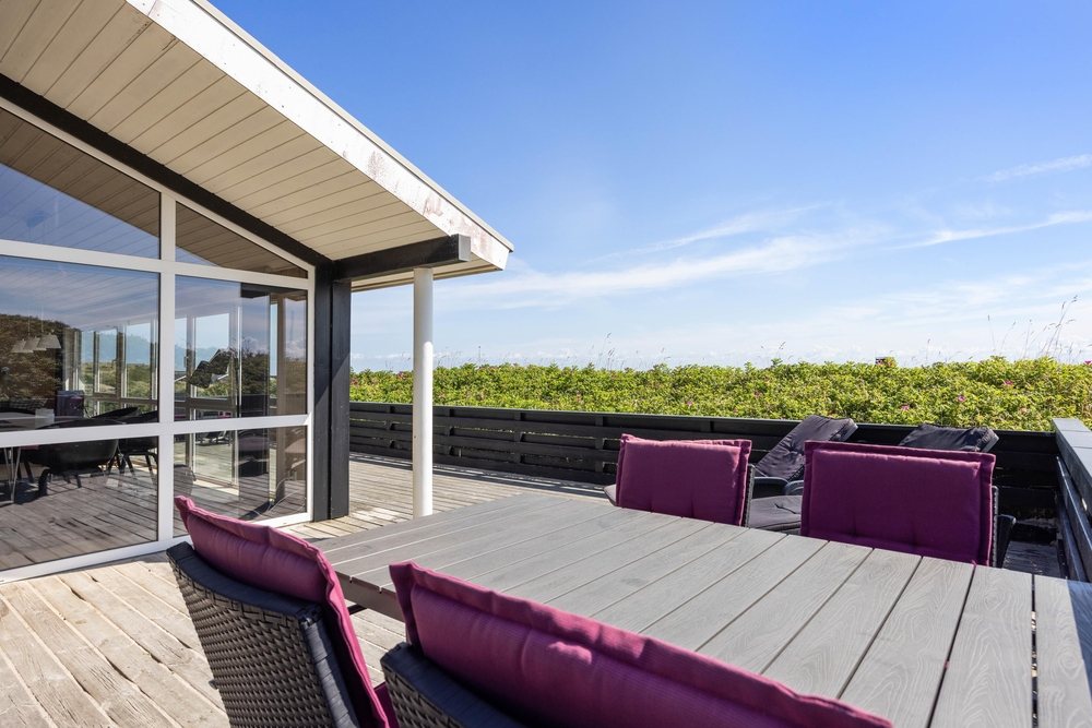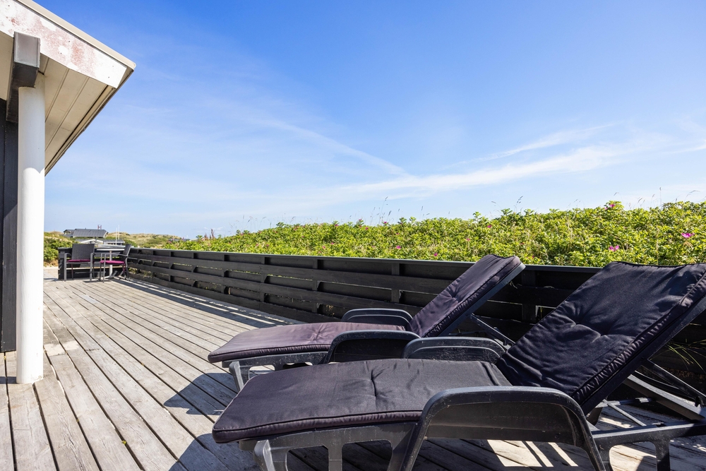 Denne perle af sommerhus ligger højt og for enden af vejen i klitterne til Vesterhavet. På den delvist afskærmede og overdækkede terrasse finder du altid den perfekte plads til at læse en god bog eller bare nyde en kop friskbrygget kaffe.