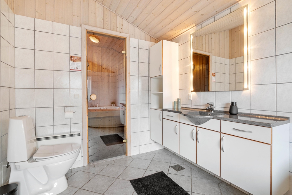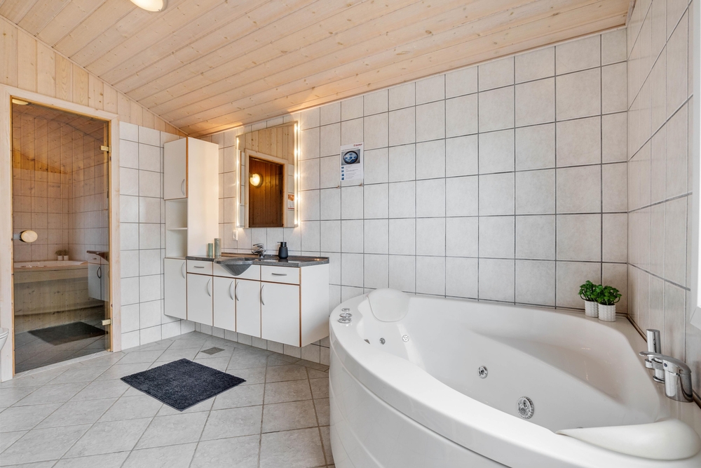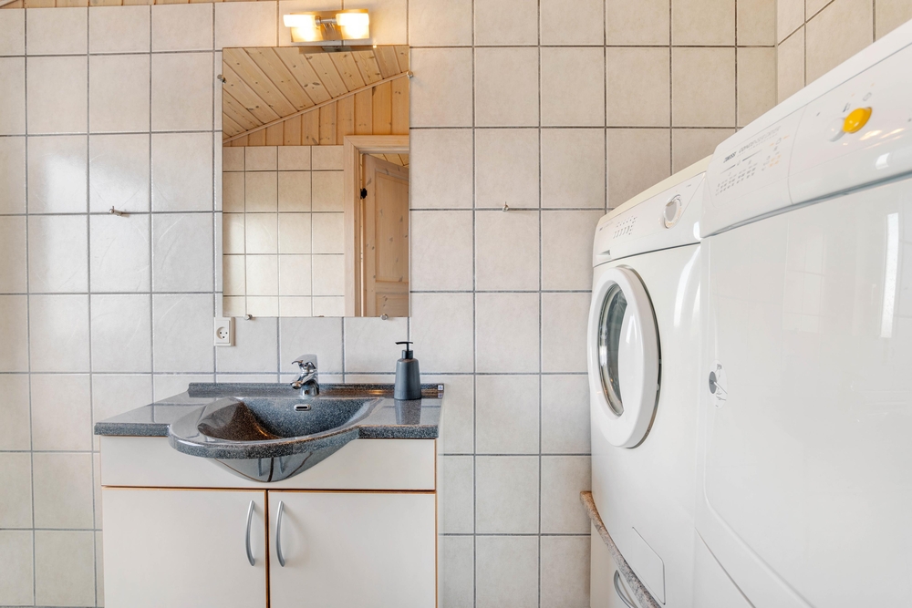 Vaskemaskine og tørretumbler står til rådighed, så I kan have rene håndklæder hver dag, efter I har været ved stranden og slappet af i feriehusets egen sauna eller spabad.