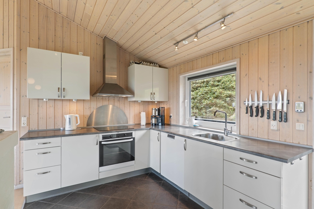 Den typiske skandinaviske hygge byder dig velkommen, så snart du træder ind i dette skønne sommerhus. Det åbne stue- og spiseområde har en bred glasfront, der skaber et flot lysinfald. Den hyggelige sofa inviterer til en afslappende filmaften med hele familien. TV?et med chromecast og dvd- afspilller byder på mange muligheder.