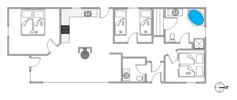 Det moderne køkken lader intet tilbage at ønske. Her kan du fremtrylle lækre menuer med hele familien. De 3 soveværelser er opdelt i 2 værelser med dobbeltsenge samt et værelse med 2 enkeltsenge. Ingen kø om morgenen, der er både et badeværelse samt et gæstetoilet til rådighed og på begge er der installeret gulvvarme.