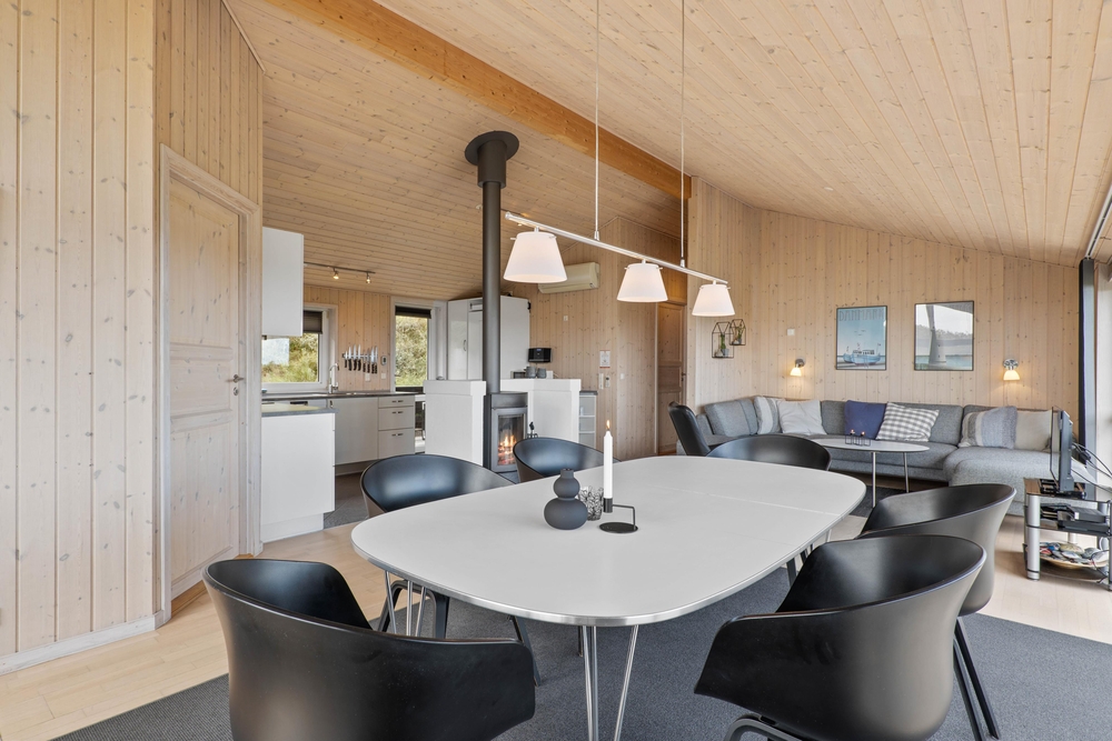 Brændeovnen skaber en særlig hyggelig atmosfære og omfavner jer med sin varme. Desuden kan I tænde for den energibesparende varmepumpe.