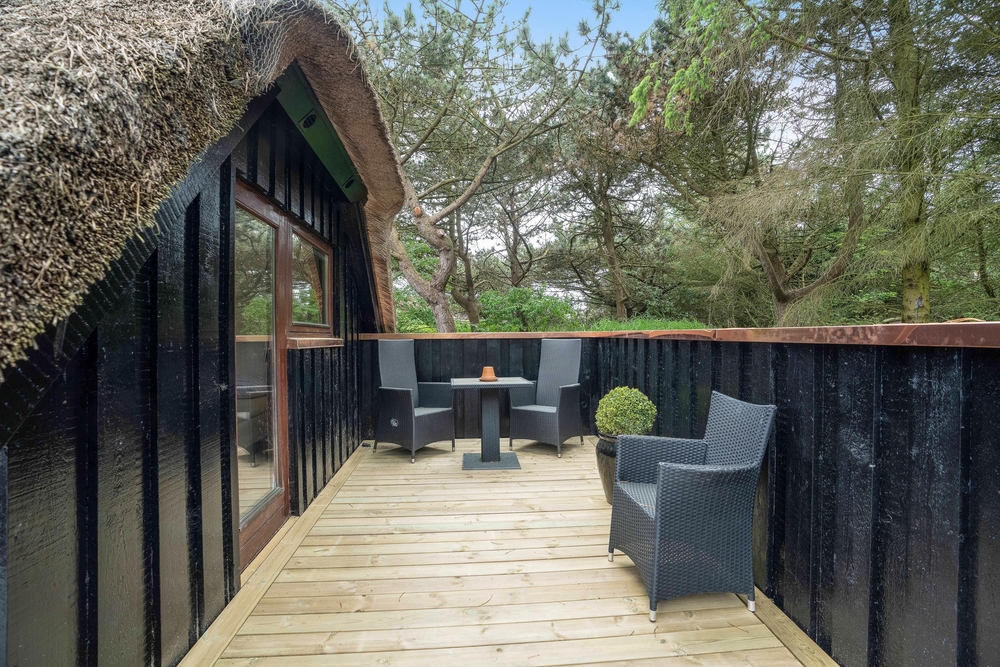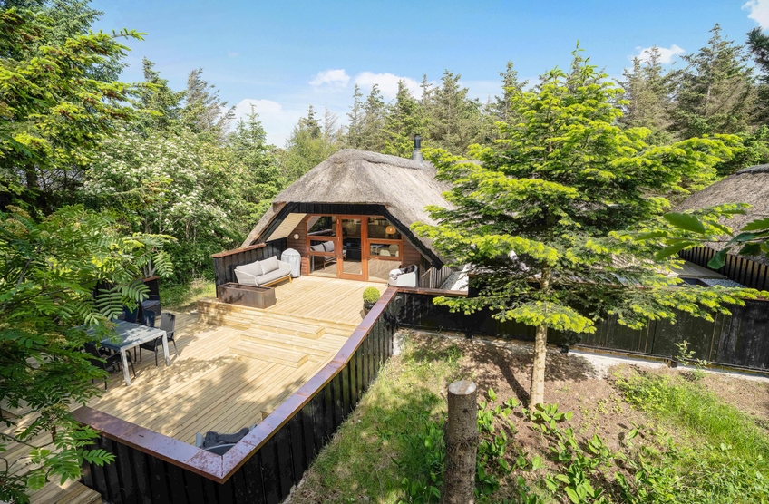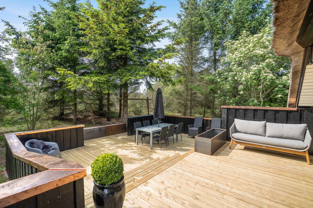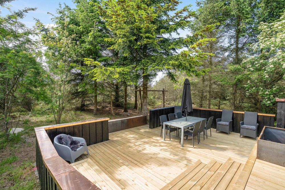 Drømmer I om en dejlig ferie i det vestjyske, kunne sommerhuset på Jens Jensens Vej 26 bestemt være en mulighed. Sommerhuset har både spa og sauna og rummer plads til 6 personer. Hunden er også velkommen her! Sommerhuset ligger på en godt 3000m2 stor naturgrund i grønne omgivelser, totalt omgivet af træer. Der er virkelig dømt sommerhusstemning i feriehuset her, som er omgivet af store nybyggede terrasser, hvor I virkelig kan få slappet af og lade batterierne op.