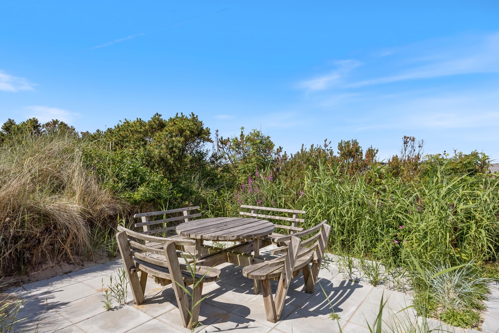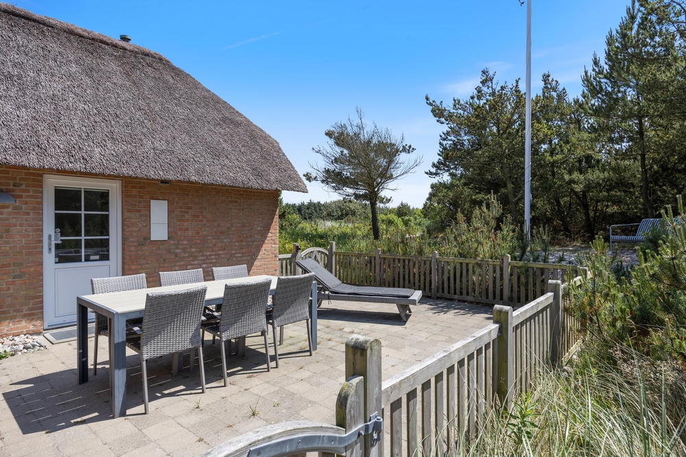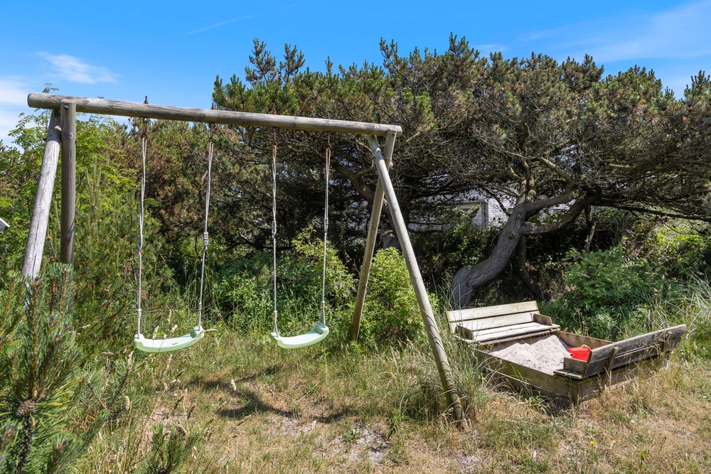 På solrige dage kan I slænge jer i havemøblerne på en af de dejlige terrasser der omgiver huset. For de mindste er der også gynger og sandkasse, som helt sikkert vil være et hit. På den ene terrasse finder I også udendørsspaen, der har plads til 6 personer. Eller hvad med et forfriskende skyl under udebruseren? Hvor I kan skylle sandet af efter en gåtur langs havet.