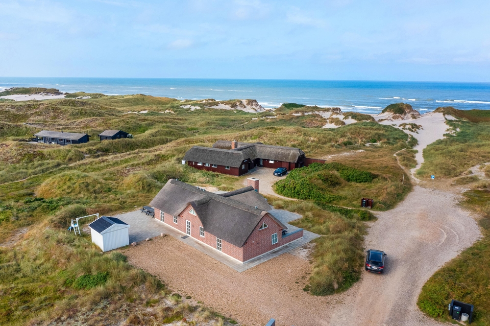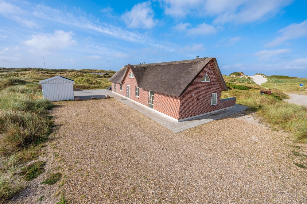 På Jens Jensens Vej 65 i Søndervig ? blot 150 meter fra klitter og strand ? ligger dette lækre feriehus i sten og med stråtag. Det otte personers sommerhus ligger på en ugeneret beliggenhed for enden af en stille og rolig vej. Her får I den perfekte ramme for ferien, hvis I værdsætter komfort og velvære.