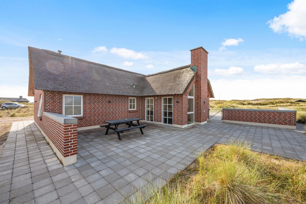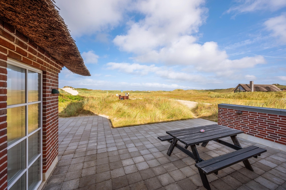 Huset er omgivet af gode terrasser mod både øst, syd og vest. Det betyder også, at uanset tidspunkt på dagen kan I finde en solrig plet, hvor I kan slå jer ned og nyde lyden af Vesterhavets brusende bølger i baggrinden. Der er naturligvis sørget for både liggestole, havemøbler og grill, så I virkelig slappe af og nyde sommeren med grillhygge og solbadning.