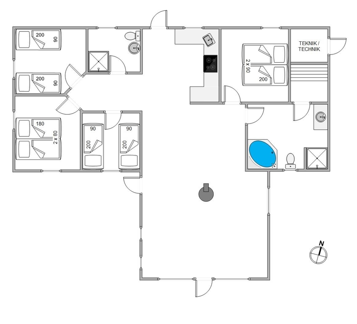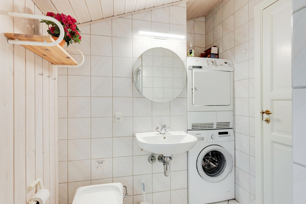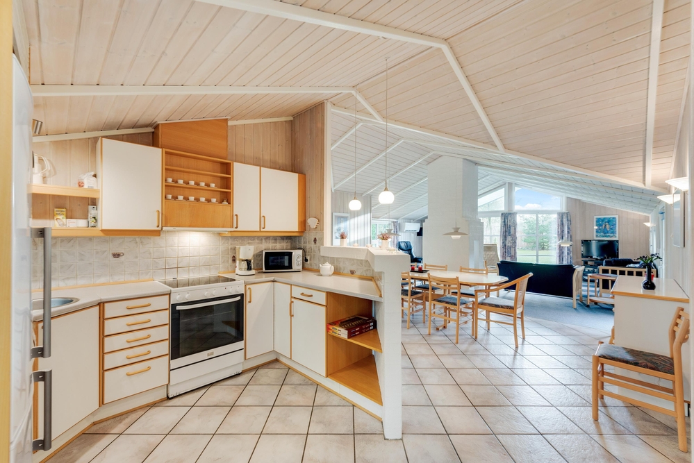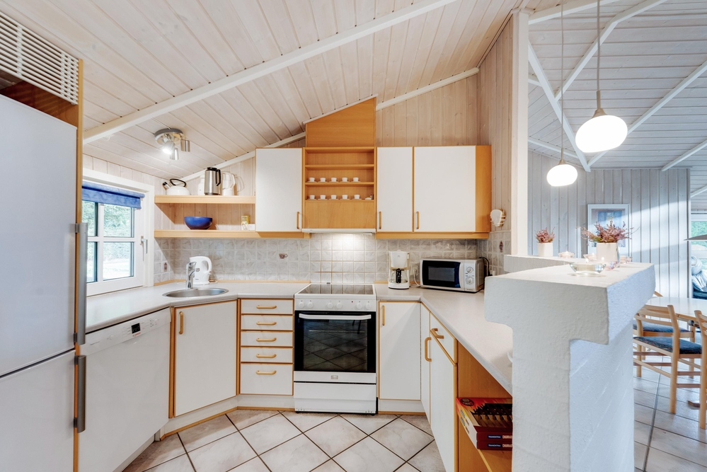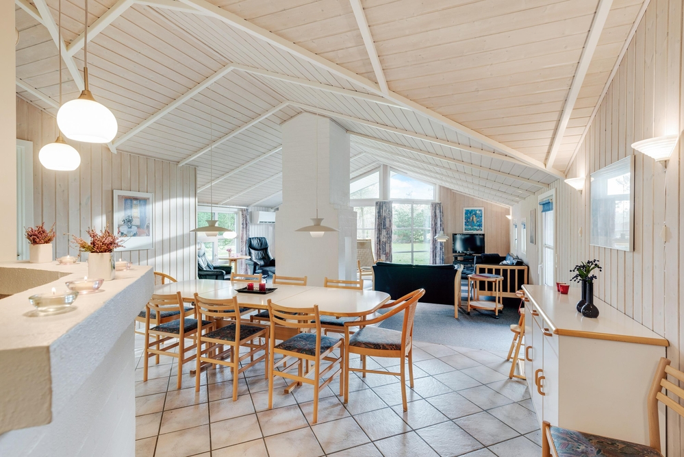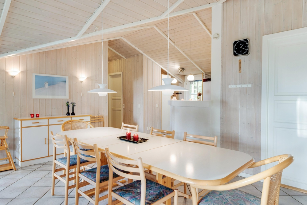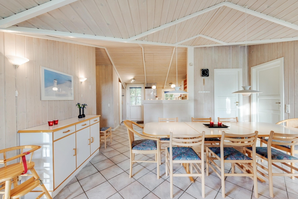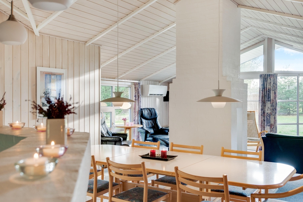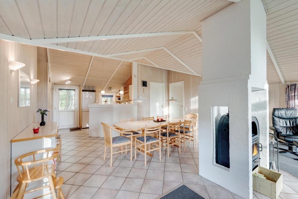 I den store spisestue er der god plads til, at hele familien sammen kan tilberede dagens måltider, spise en lækker middag rundt om spisebordet og samles rundt om den knitrende brændeovn. Køkkenet er udstyret med opvaskemaskine, og i badeværelset finder I både en vaskemaskine og en tørretumbler, så I skal lave så lidt praktisk arbejde som muligt.