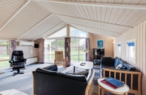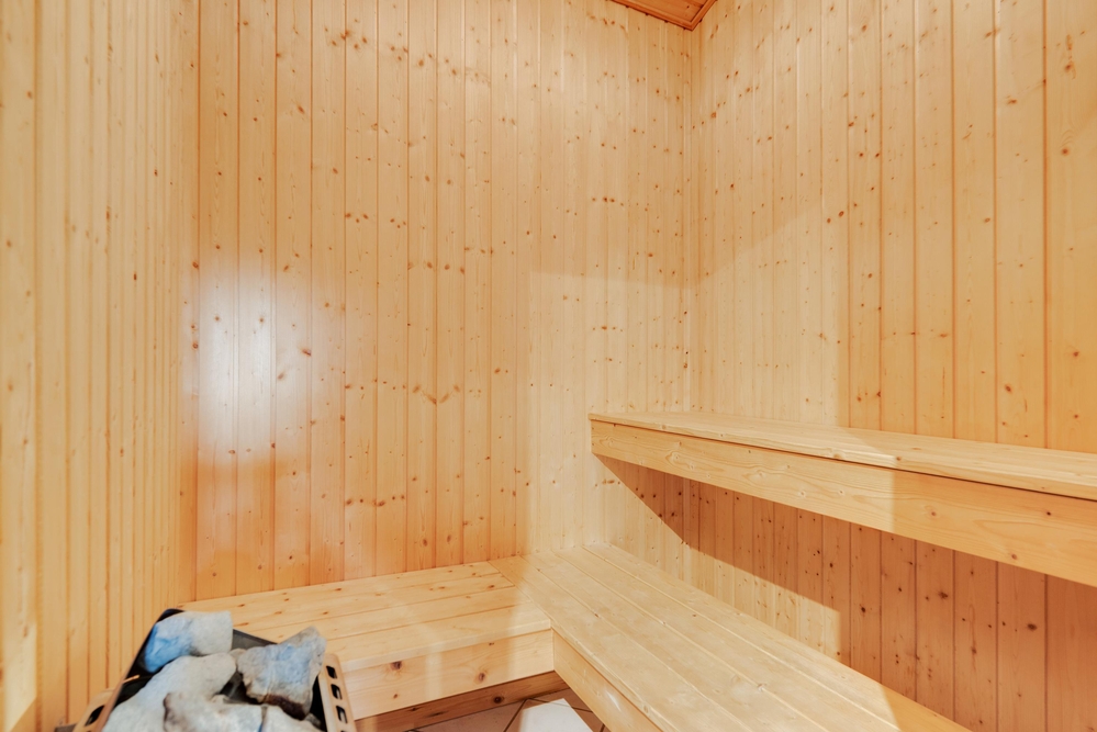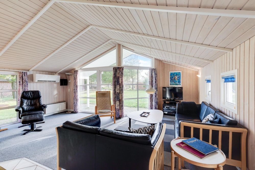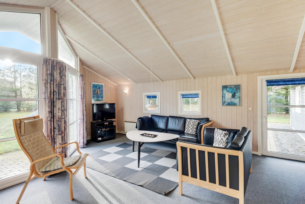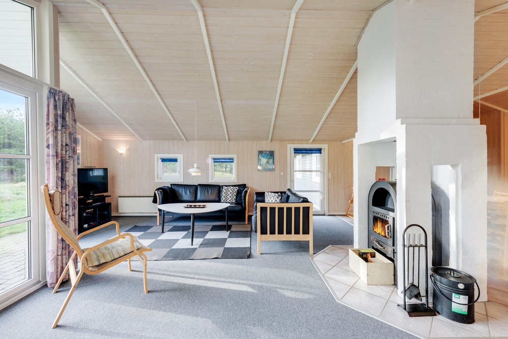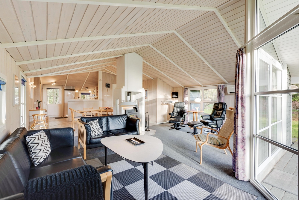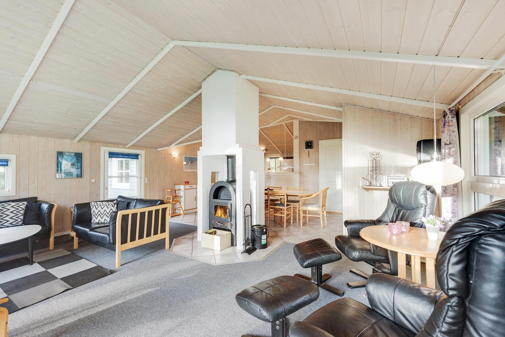 Lænestolen og sofaen i stuen indbyder til hyggelige feriestunder med kortspil og filmaftener, mens I kan betragte den flotte udsigt gennem vinduesfronterne, som lader solens lys slippe ind. Efter en lang gåtur i skoven eller en strandtur med frisk havluft og røde kinder står saunaen og spabadet klar til at tage hånd om jer, så I kan få varmen igen og slappe af på bedste vis.