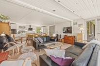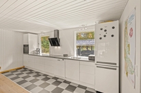 På Jeppesvej 57 er feriehusets midtpunkt den hyggelige opholdsstue. Med lyst træ, naturlige farver og store vinduer er her åbent og indbydende. Her kan du sætte dig godt til rette i sofaen, mens ilden knitrer i brændeovnen og lade blikket vandre ud over naturen. Eller I kan arrangere en filmaften med hjemmelavede popcorn. Ved spisebordet kan I lave krea-ting eller spille et brætspil. Det åbne køkken er moderne udstyret, bl.a. med opvaskemaskine og en separat fryser på 70 l. Den omkostnings- og energibesparende varmepumpe sørger for behagelige temperaturer i feriehuset.