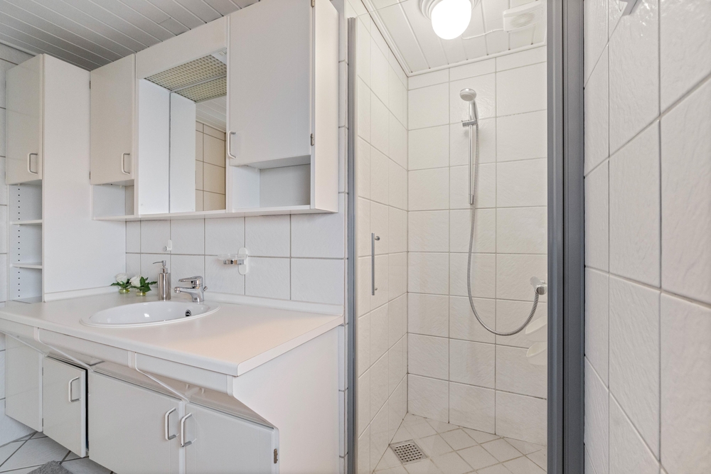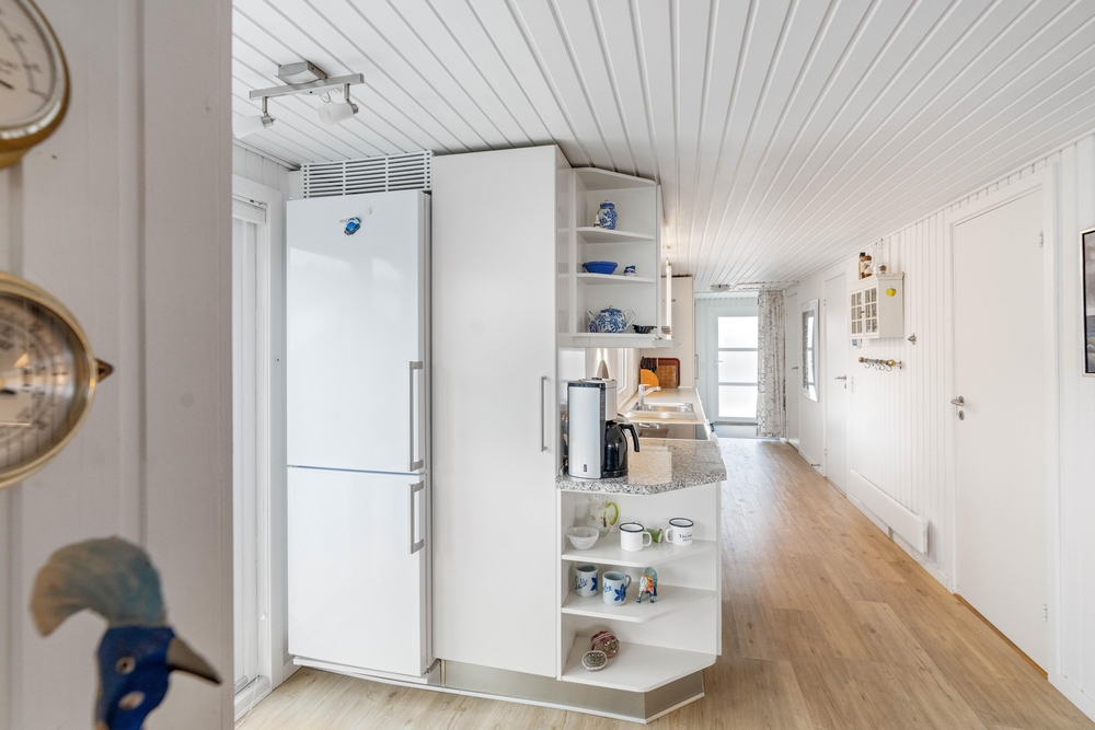 Feriehuset er udstyret med moderne faciliteter, som vaskemaskine, tørretumbler og energibesparende varmepumpe.