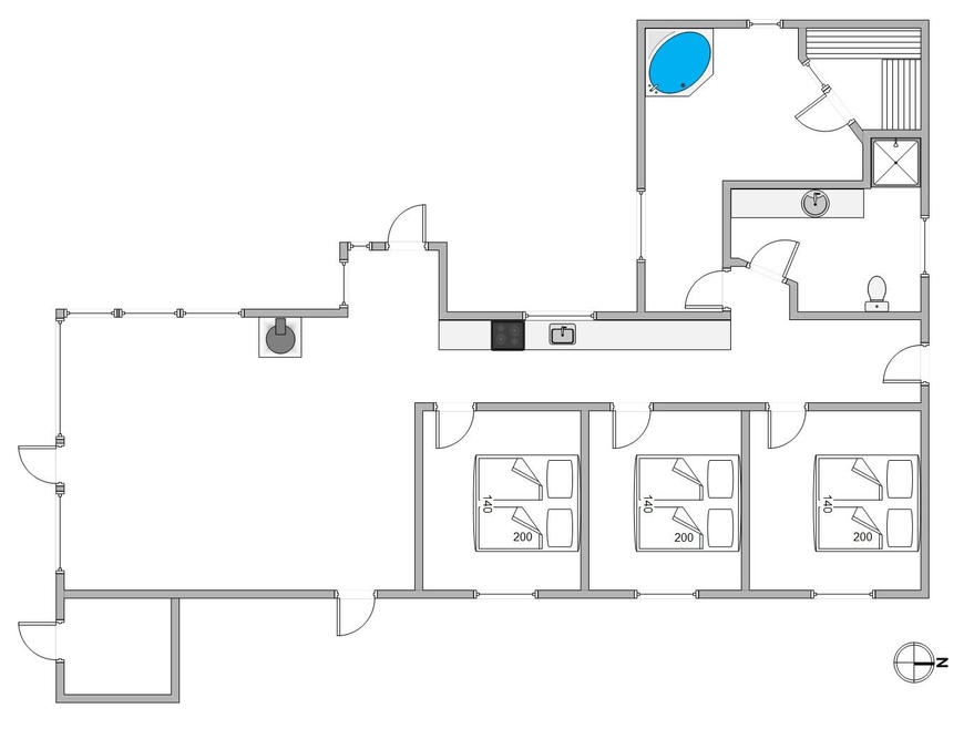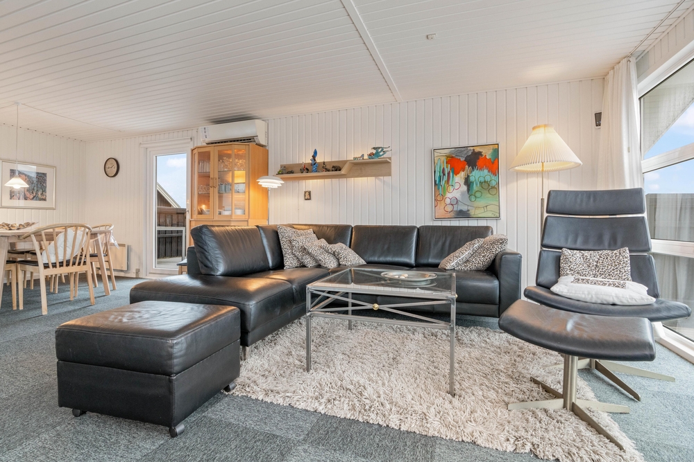 Sommerhuset er indbydende, lyst og venligt indrettet. Et funktionelt og praktisk indrettet køkken er åbent ind til den elegante spiseafdeling og den hyggelige og lyse opholdsafdeling. Det brede vinduesparti giver et smukt lysindfald og udsigt ud i naturen og klitterne. Hyg dig i en god lænestol med en god bog og en kop kaffe, imens ilden fra brændeovnen giver varme og hygge til hele rummet og bidrager til den afslappede feriestemning. Badeværelset med spa og sauna giver rig mulighed for afslapning og velvære. Der er 3 gode, lyse soveværelser med komfortable dobbeltsenge, hvor I kan hvile rigtig godt ud i den friske vesterhavsluft.