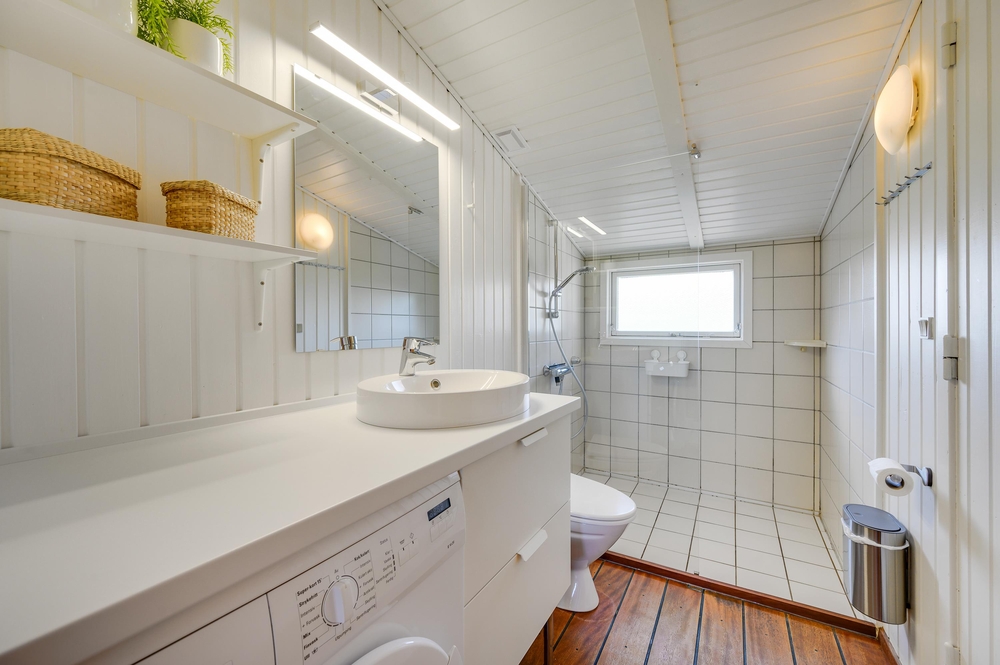 På det andet badeværelse er der en vaskemaskine, så I har mulighed for at vaske tøj under jeres ophold. Der er gulvvarme på begge badeværelser.