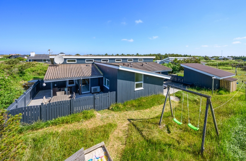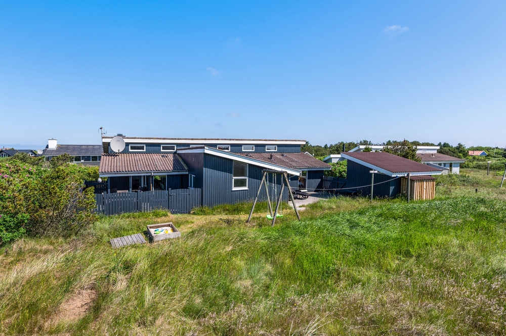 Fra sommerhuset er der 800 meter til Vesterhavet, hvor I kan gå ture med eller bygge sandslotte med børnene. Den lokale købmand ligger kun 500 meter væk, og her kan I købe friskbagt brød til morgenmaden, lækkert kød til grillen og meget mere.