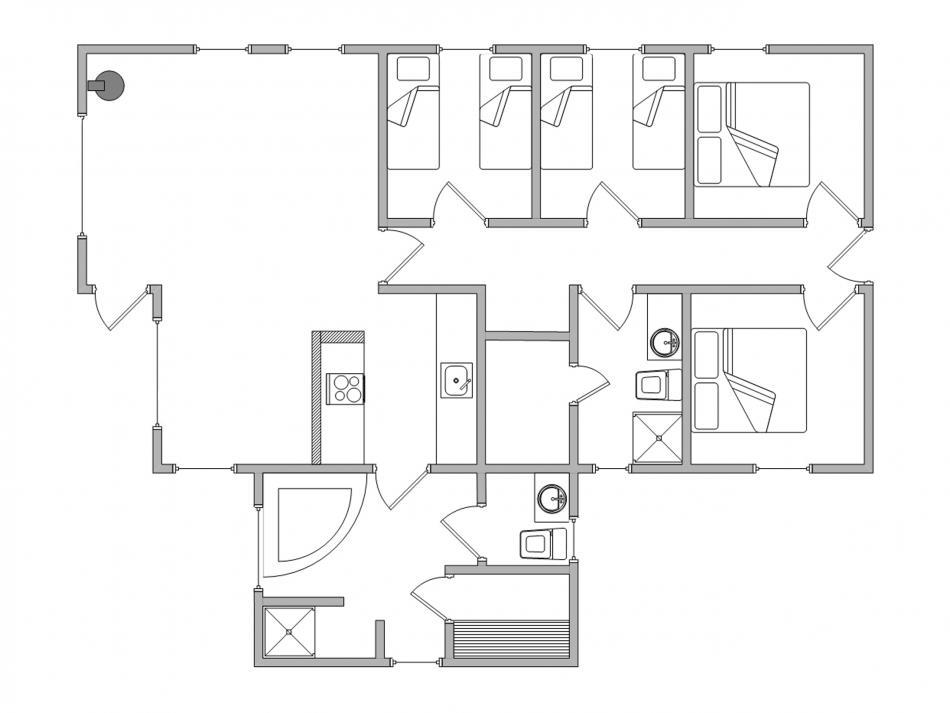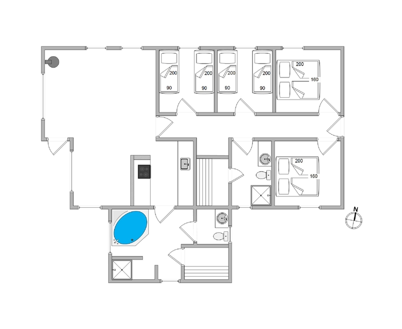 Feriehuset er indrettet med 4 soverum med plads til i alt otte overnattende gæster. Der er dobbeltsenge på 2 af værelserne, og på de sidste værelser er der enkeltsenge, hvor I kan få ny energi til morgendagens aktiviteter.