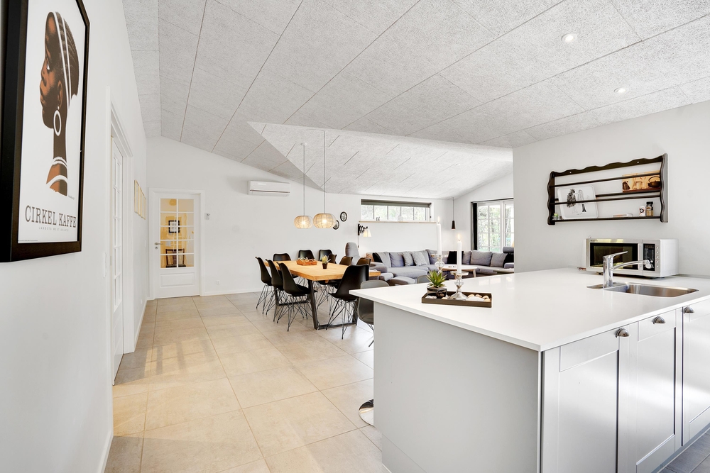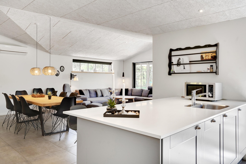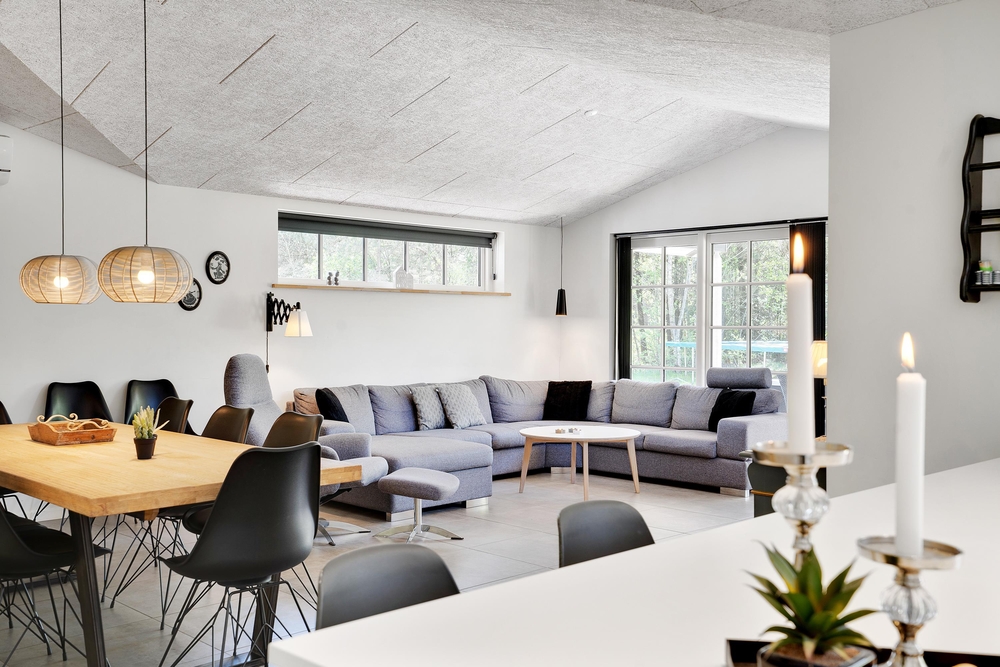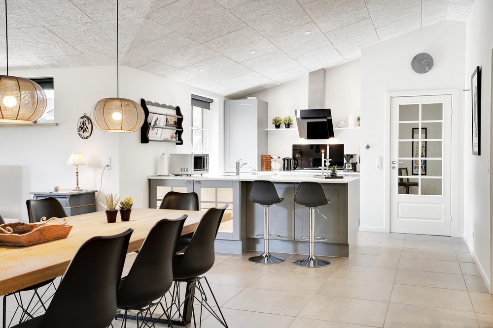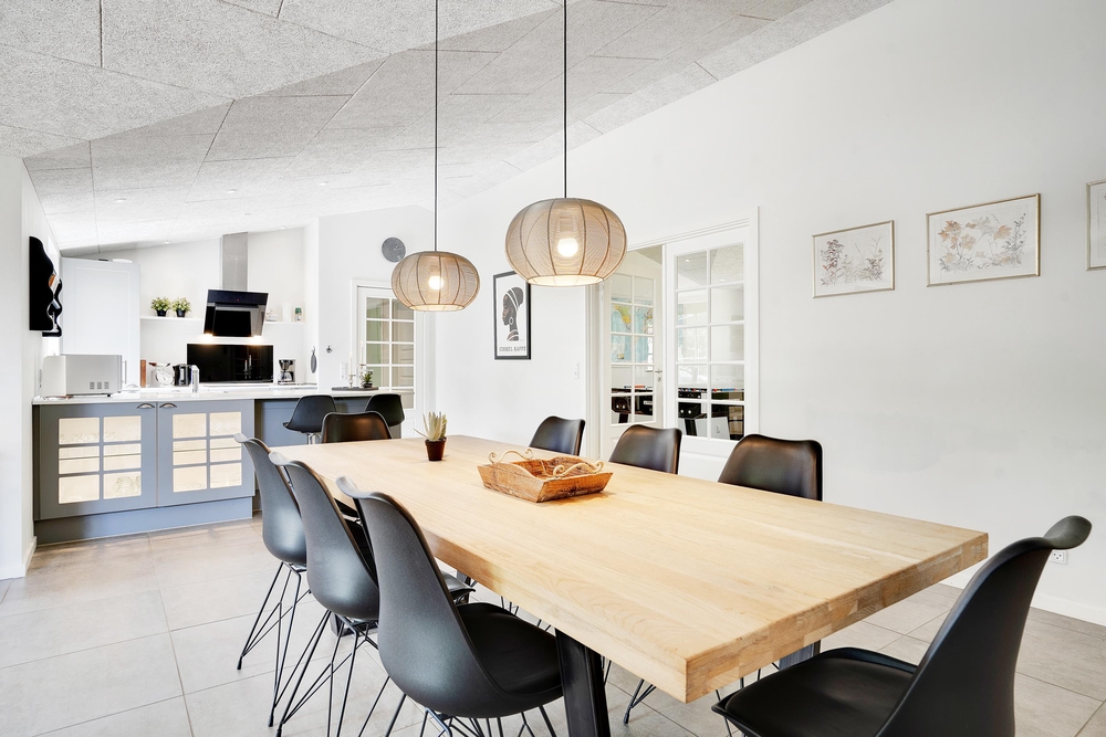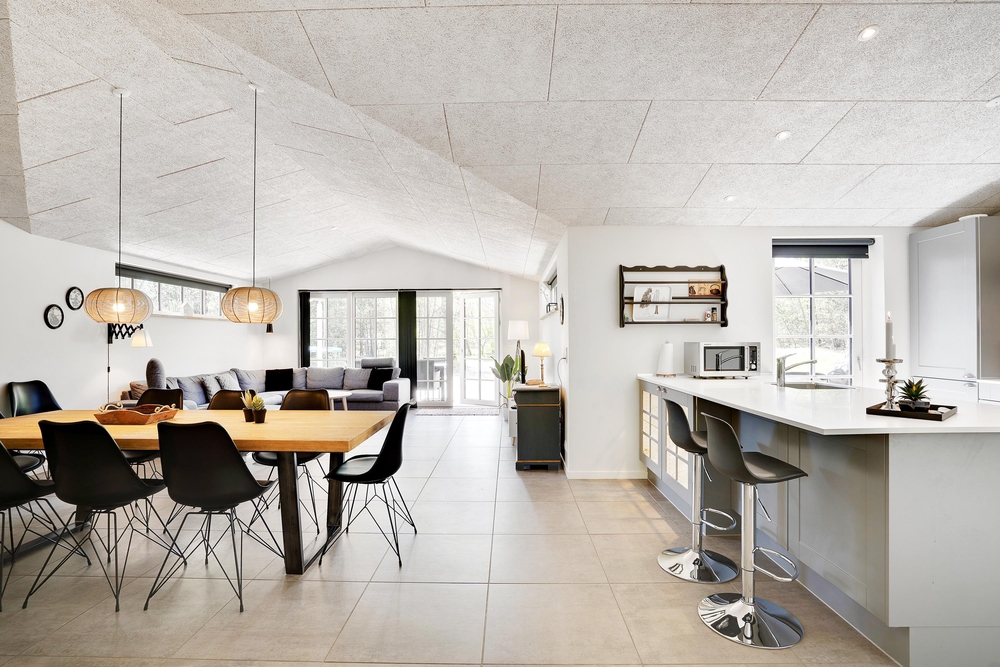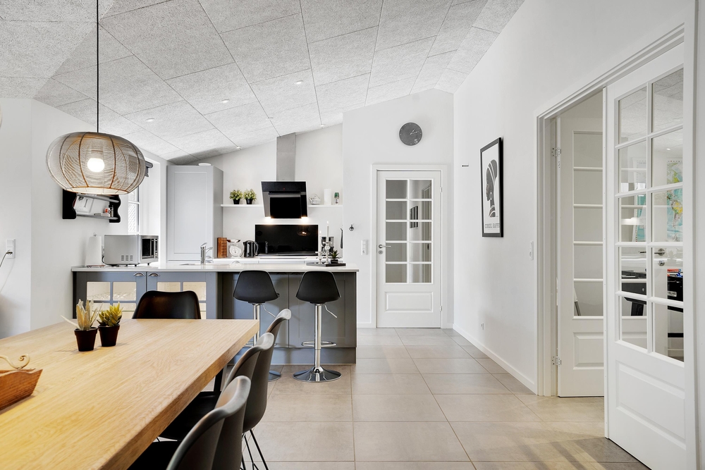 Der er gjort meget ud af, at alle skal befinde sig vel i feriehuset; fra det åbne stue- og køkkenområde kommer man ind i de konkurrenceglade gæsters base, aktivitetsrummet, hvor der både står et airhockeybord og et spil bordfodbold til rådighed. Her kan I rigtig slå jer løs og udfordre hinanden på kryds og tværs.