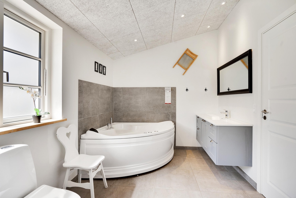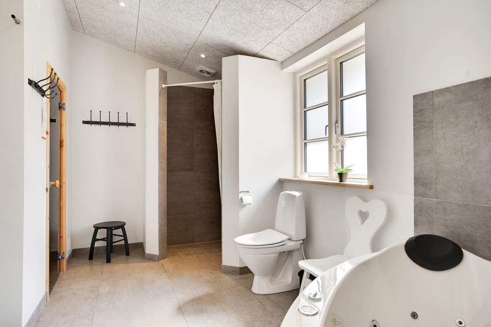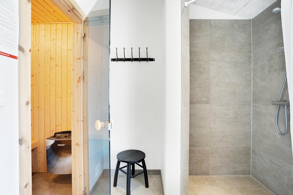 Er I mere til afslapning, byder det ene af husets 2 badeværelser på en ekstra overraskelse til jer. Her står både sauna og spabad klar til at forkæle jer med en varm wellnessoplevelse, når I trænger til at lade batterierne op.