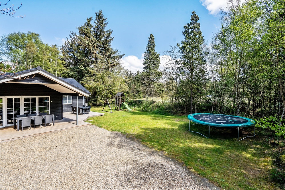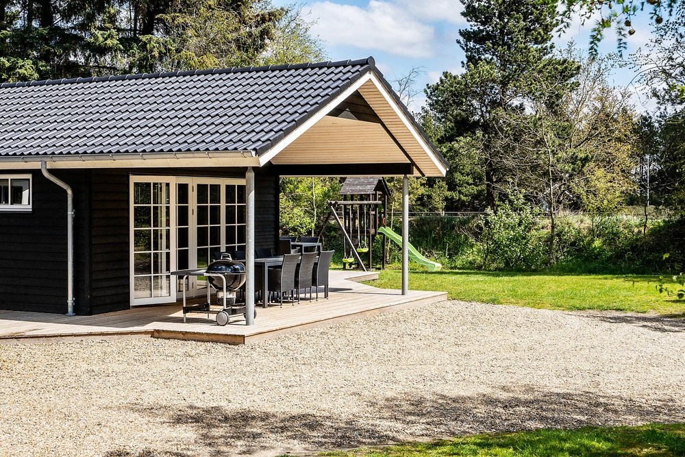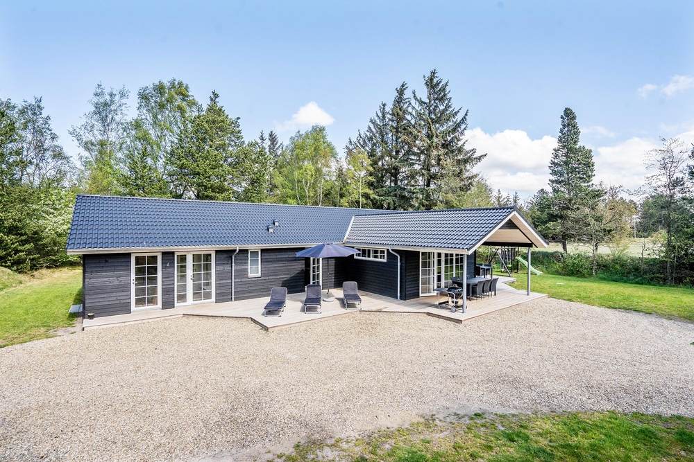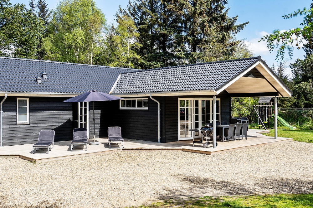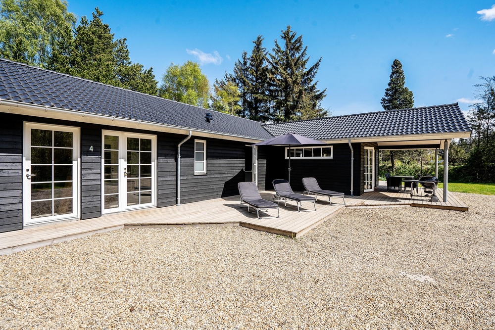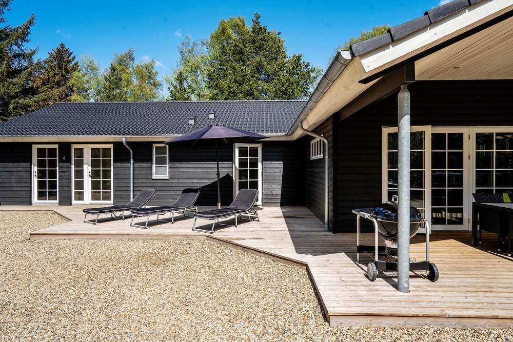 Rundt om feriehuset på de skønne terrasser finder alle hurtigt en plads i solen ? eller skyggen under den overdækkede del af terrassen, hvis man er mere til det. De gode havemøbler og liggestole sørger for, at I kan nyde den friske luft og det gode vejr i fulde drag, og de høje træer, der omgiver grunden, giver jer en fantastisk, rolig beliggenhed.