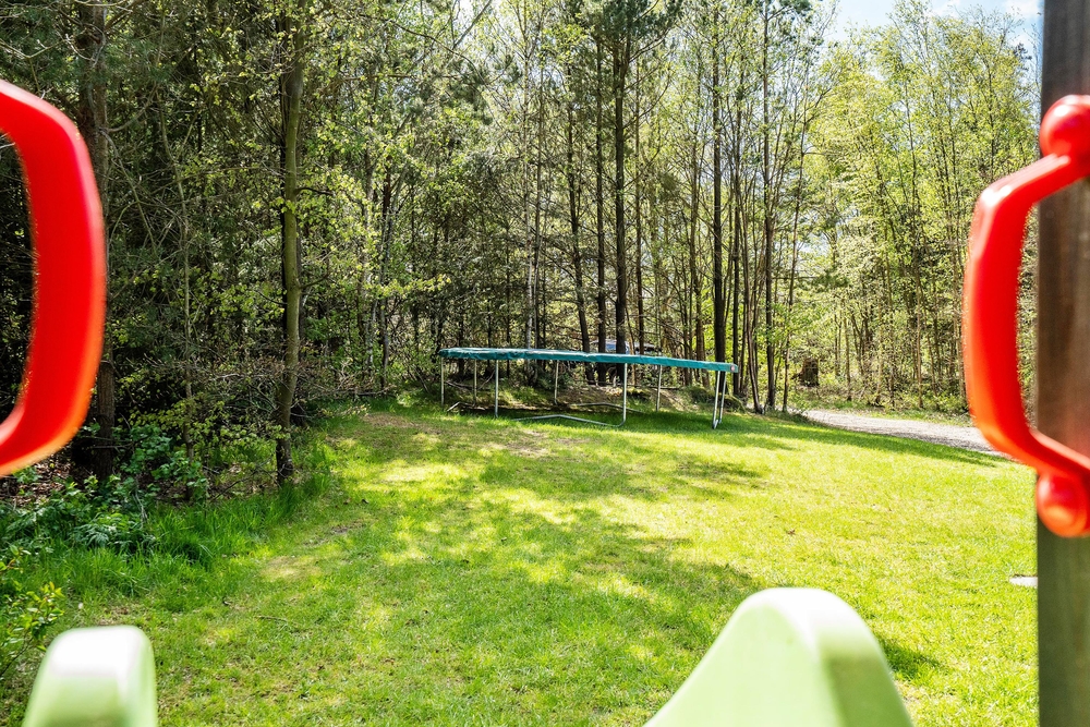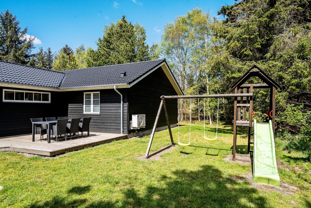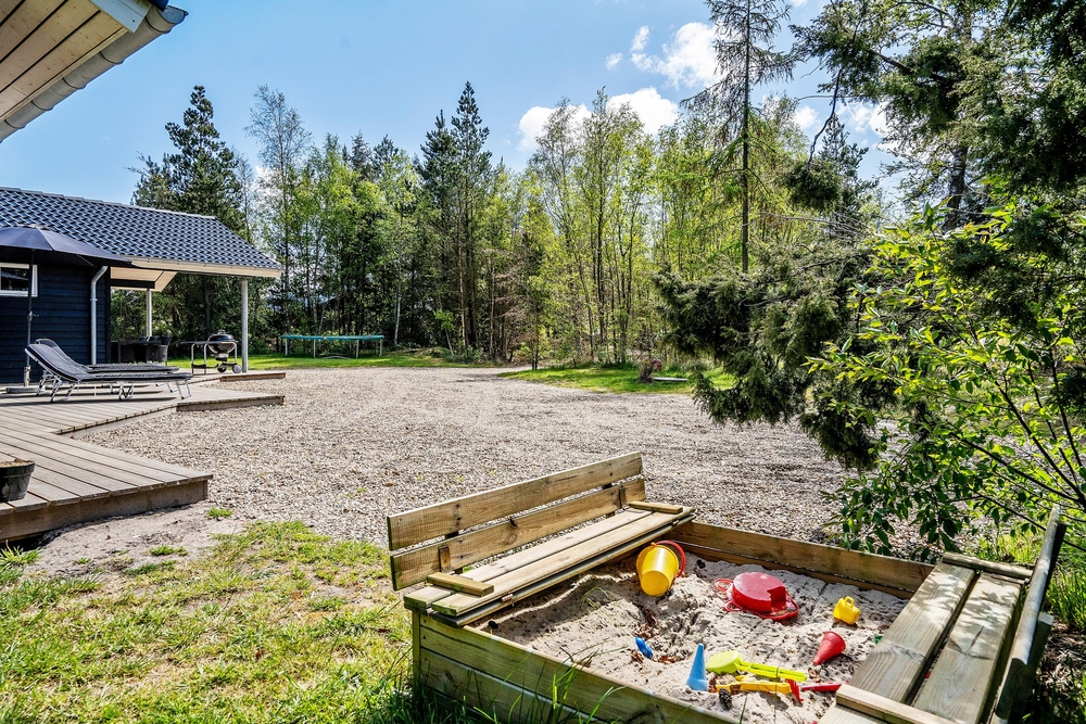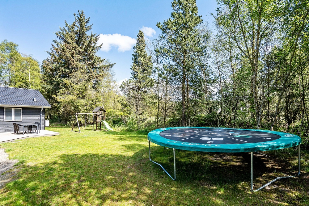 Den store, grønne græsplæne byder på masser af underholdning til børnene. Med både trampolin, gyngestativ, rutsjebane, sandkasse og en masse plads at tumle rundt på kommer de aldrig til at kede sig på ferien.