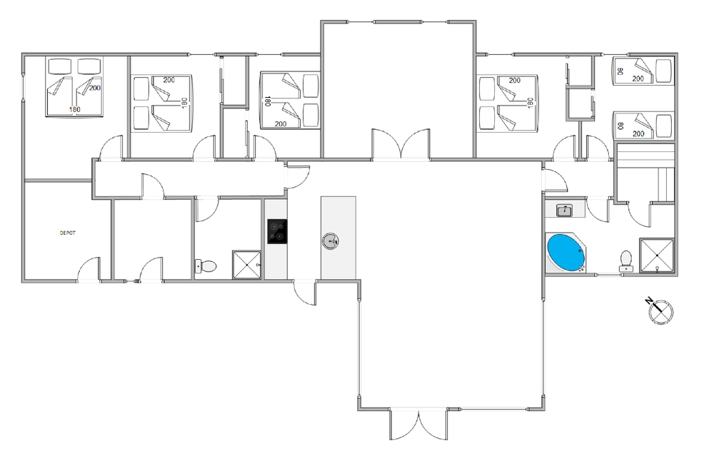Velkommen på luksusferie i Ho ? på de mere end 180 kvadratmeter finder hele familien uden problemer god plads. Den lyse og moderne indretning fungerer som rød tråd i hele sommerhuset, og de mange vinduer inviterer solens stråler indenfor og skaber en endnu mere rummelig og åben atmosfære.
