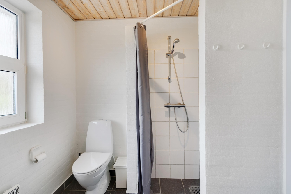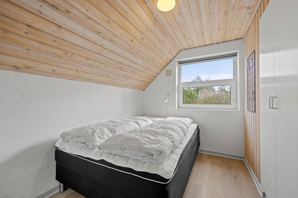 Sommerhusets gode soveværelser er fordelt over 4 værelser med 2 enkeltsenge i hver. Hver af rummene har trælaminat på gulvene.