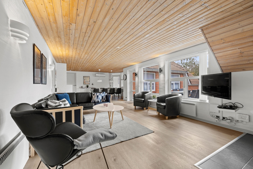 Det skønne murstenshus på Kærvej 33, som byder plads til 8 personer, er indrettet lyst, som bl.a opvarmes med varmepumpe.