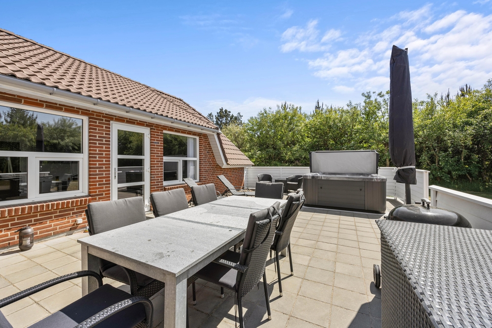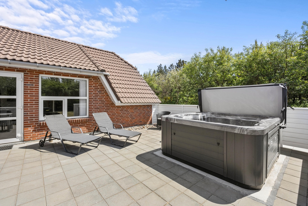 I det flotte skov- og klitområde i Henneby venter jer dette hyggelige sommerhus: Her har I mulighed for at holde en dejlig, afslappende ferie, hvor I kan nyde et veludstyret aktivitetsrum, sauna og udespa.