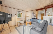 Feriehuset er er lyst og lækkert med et stort opholdsrum med brændeovn og god plads til, at hele familien kan samle sig om det ovale spisebord eller i det hyggelige sofahjørne. Køkkenet har en opvaskemaskine og de 2 badeværelser er indrettet med vaskemaskine, tørretumbler, sauna og et stort spabad med plads til 5 personer. Der er derfor ingen tvivl om, at du vil føle dig godt tilpas i dette skønne sommerhus.