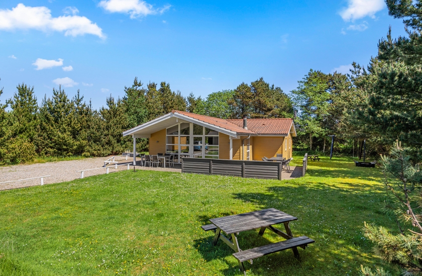 Der er gode havemøbler og liggestole, så du kan gøre dig komfortabel og lytte til vinden, mens børnene leger i haven, spiller bold eller tager en svingtur på gyngerne. Somme tider vil du opleve mågerne svæve højt over dig, fordi sommerhuset ligger tæt på Vesterhavet.