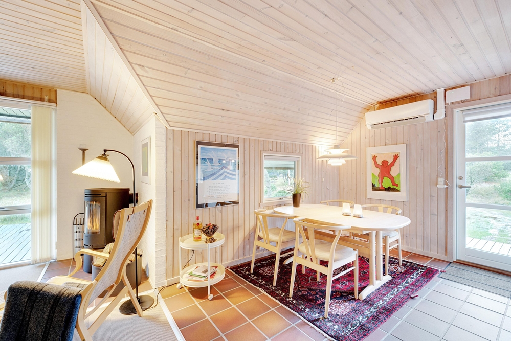 Det bliver ikke smukkere! Beliggende lige ud til den fantastisk smukke hede er sommerhuset på Kallemærskvej 16 i Blåvand det optimale valg til parrene eller familien, der elsker den vestjyske natur. Med masser af hyggefaktorer er rammerne er sat til en rigtig lækker sommerhusferie: Indenfor med den klassiske brændeovn og godt interiør og udenfor med skønne terrasseforhold og en naturgrund, der bare fortsætter i det uendelige. Samtidigt har du her muligheden for at gøre brug af de mange aktiviteter, den livlige ferieby Blåvands tilbyder.