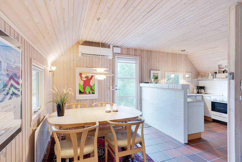 Det hele bliver opvarmet af en energibesparende luft-til-luft varmepumpe.