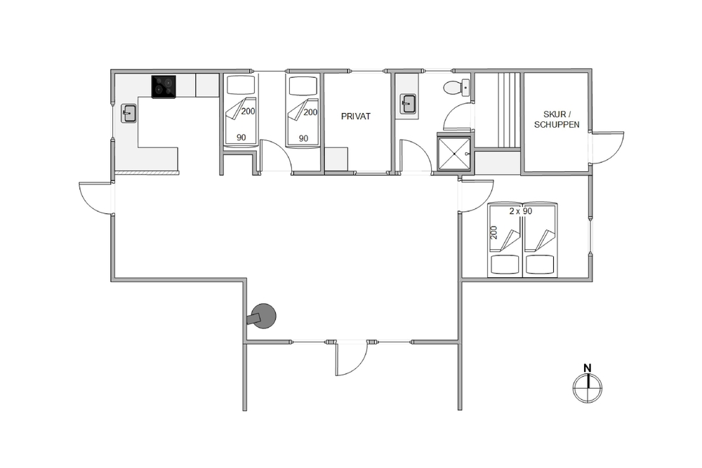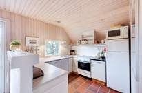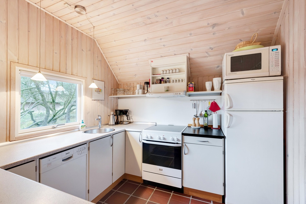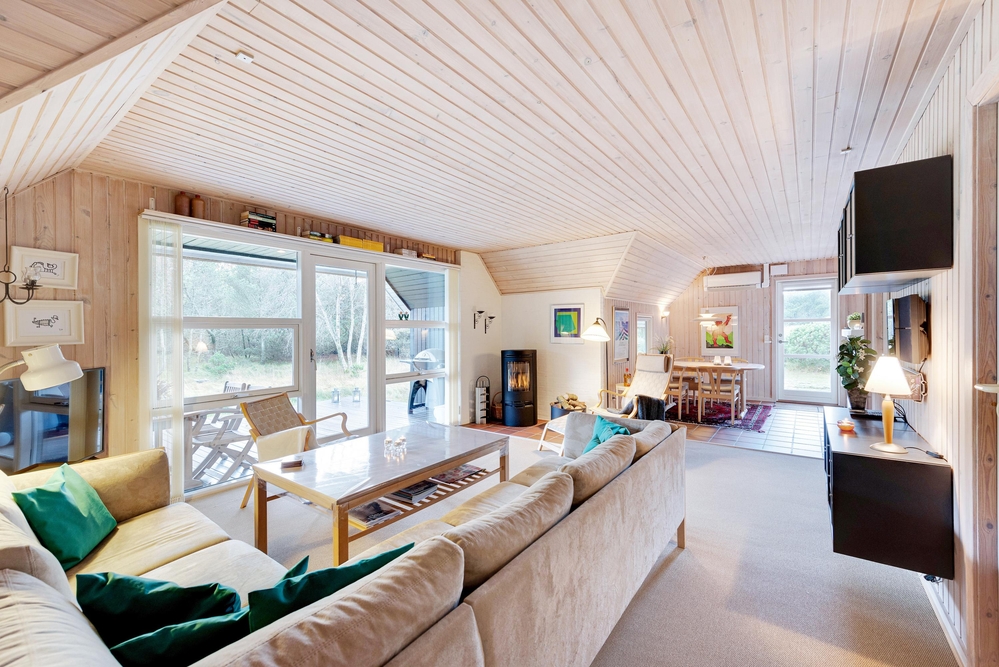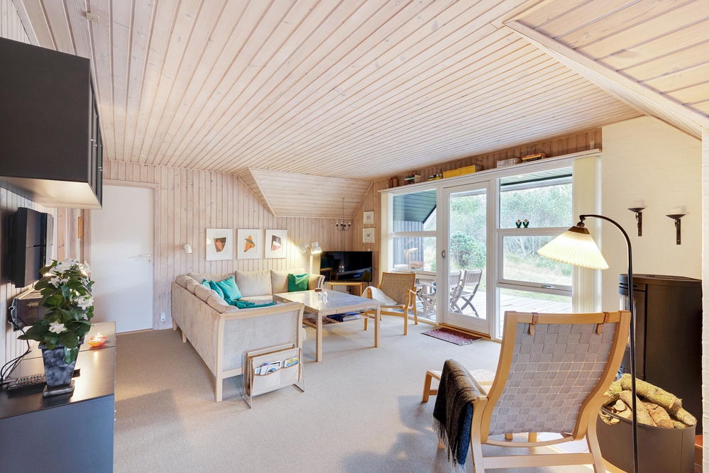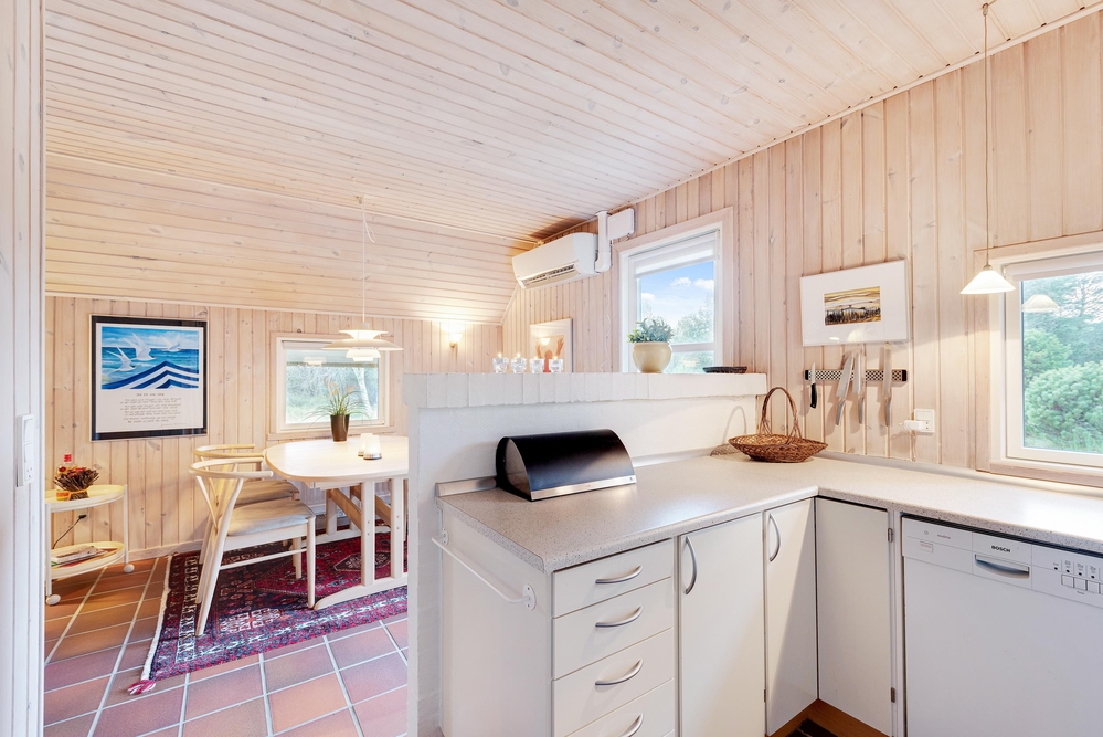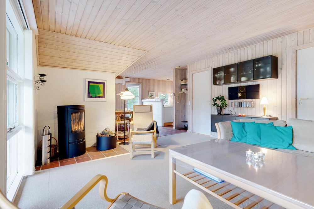 Det store åbne køkken med opvaskemaskine og stuen med brændeovn er perfekte til familiehygge enten ved spisebordet eller i den store bekvemme hjørnesofa, hvor der er plads til hele flokken.