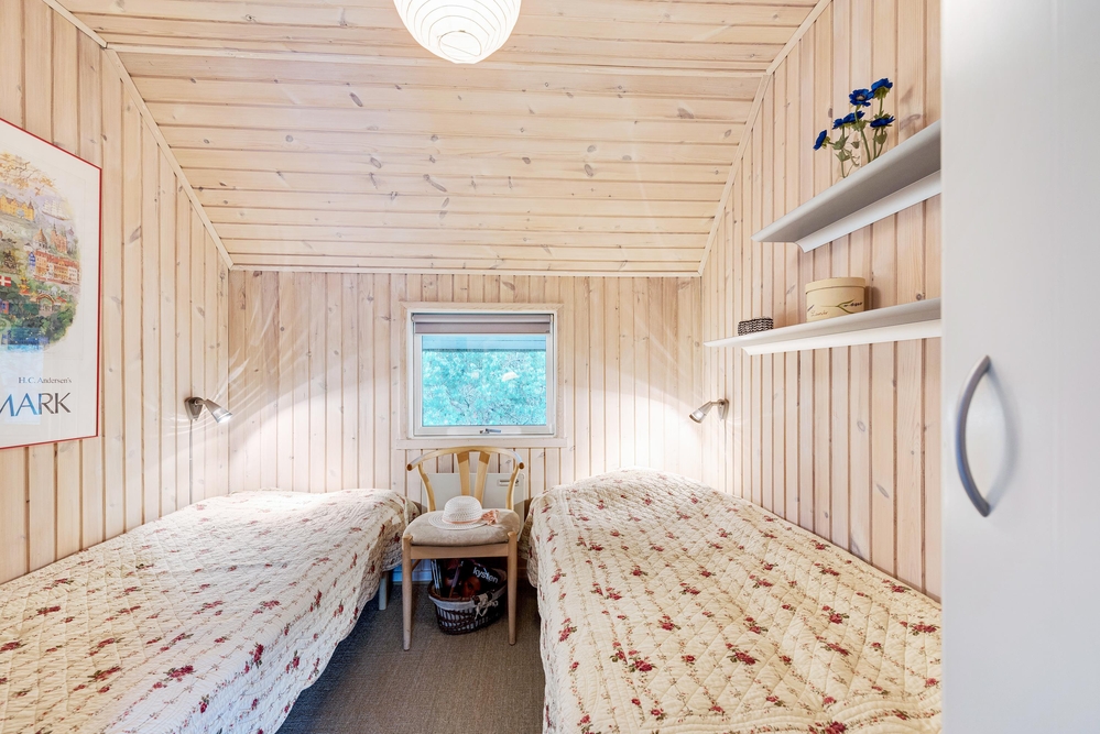 Kom ind og slap af i et dejligt sommerhus med god plads til familien på 4 eller venneparrene, der vil dele et par feriedage sammen i Blåvand. Feriehuset er praktisk og hyggeligt indrettet med 2 soverum med god skabsplads, i det ene soverum er der 2 enkeltsenge og det andet har en dobbeltseng.
