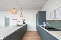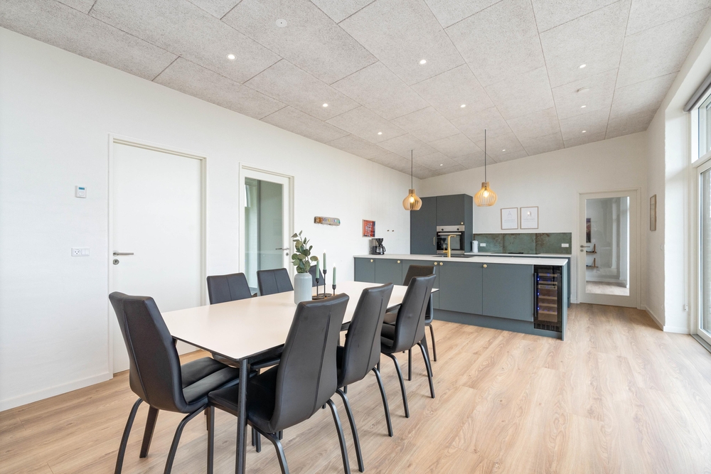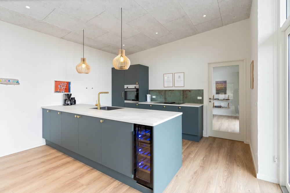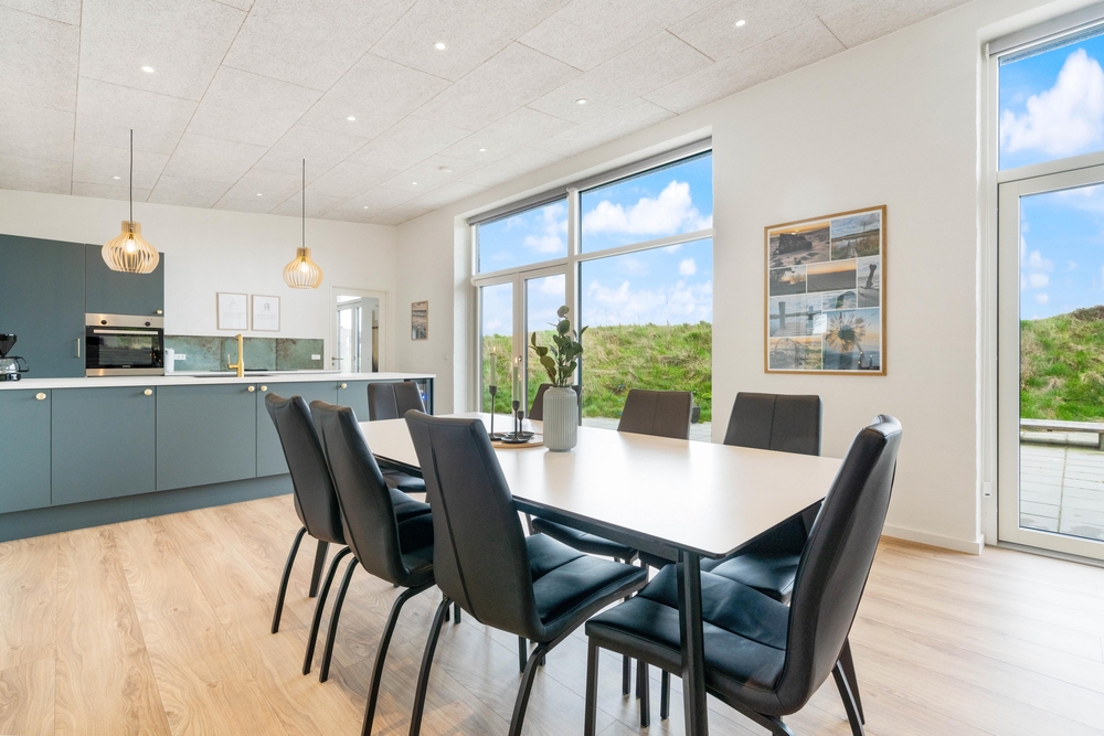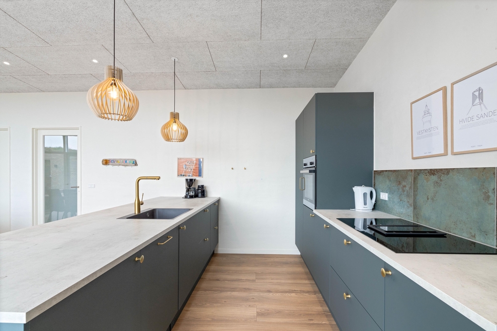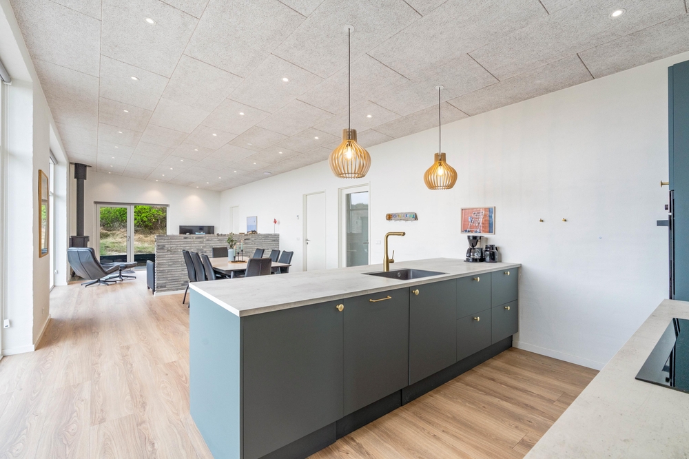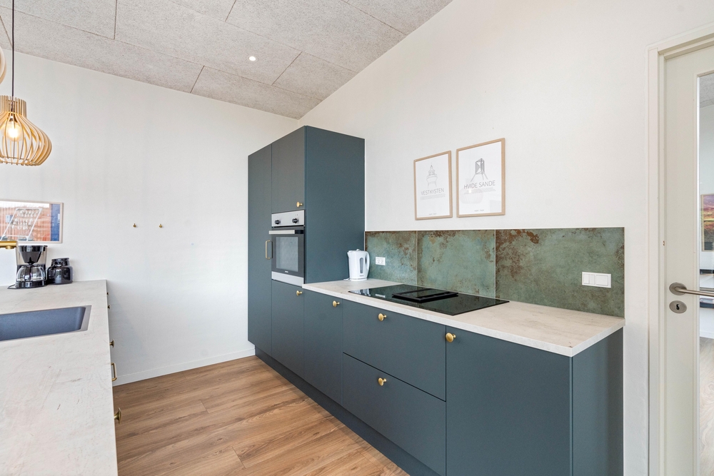 Feriehusets hjerterum er det store alrum, som består af køkken, spiseplads og stue. Køkkenet er praktisk indrettet med opvaskemaskine, køleskab med frostboks samt induktionskomfur. Her er plads til, at flere fra familien kan stå i køkkenet på samme tid, så I kan hjælpe hinanden med madlavningen.