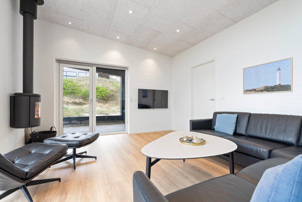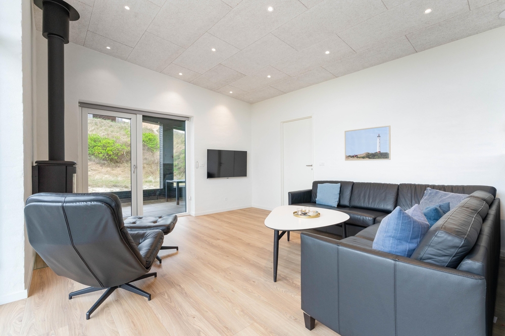 I stuen kan I tænde op for brændeovnen og nyde udsigten over sommerhusområdet i Årgab. I kan med fordel også benytte jer af den energibesparende varmepumpe. På en blæsende efterårsdag kan I holde filmaften med popcorn og kølige drikkevarer. I sommerhuset er der danske tv-kanaler.