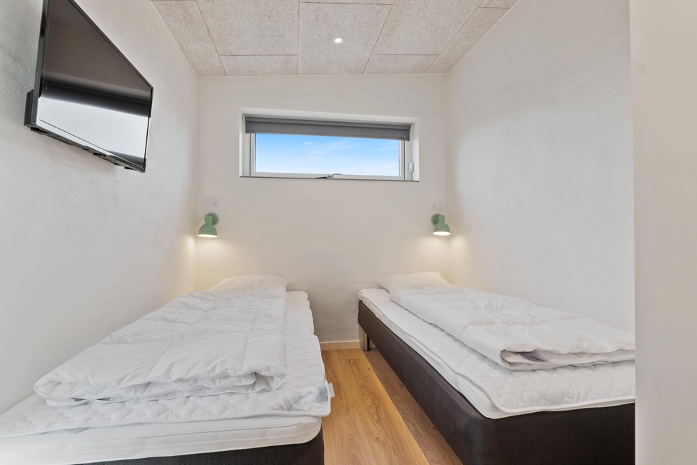 Efter en hård kamp i aktivitetsrummet kan I slappe af på de 4 soveværelser. Der er 3 komfortable dobbeltsenge, mens det sidste værelse er indrettet med gode enkeltsenge.