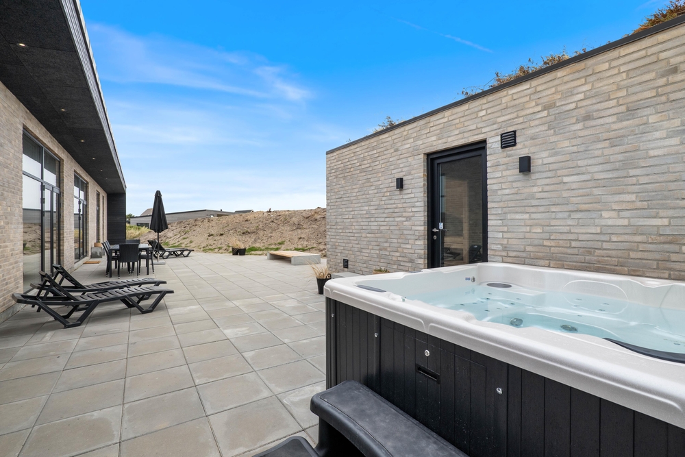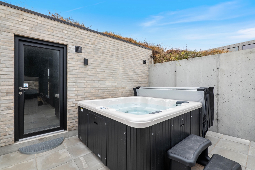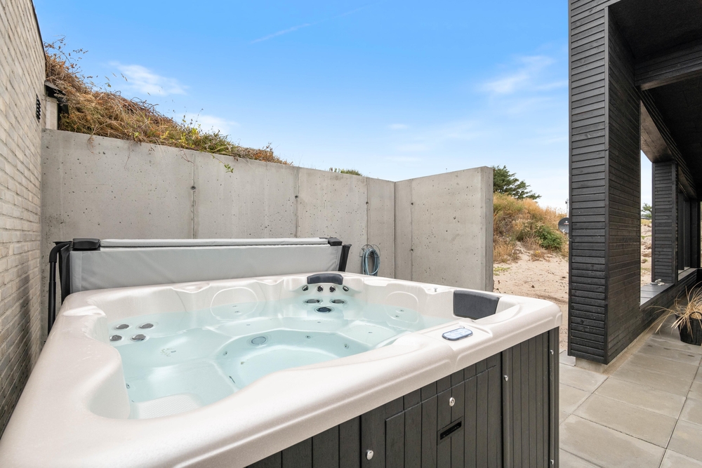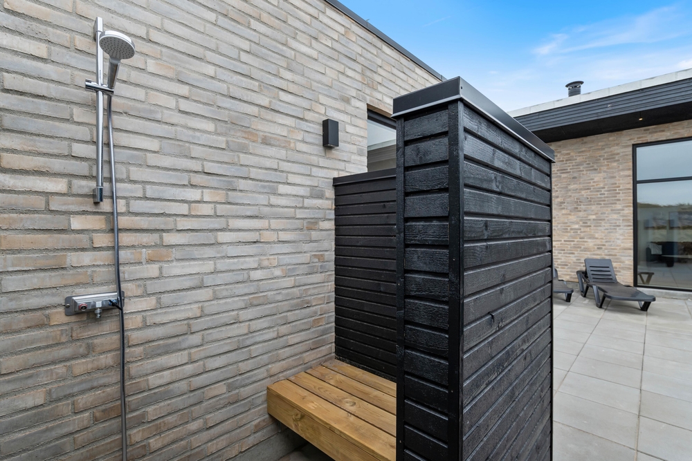 Udearealet ved sommerhuset indbyder til afslapning og velvære. Her kan I hoppe en tur i den boblende udespa efterfulgt af afslapning i den varme udesauna. Har I været en tur ved vandet, kan I skylle sandet af fødderne under den udendørs bruser.